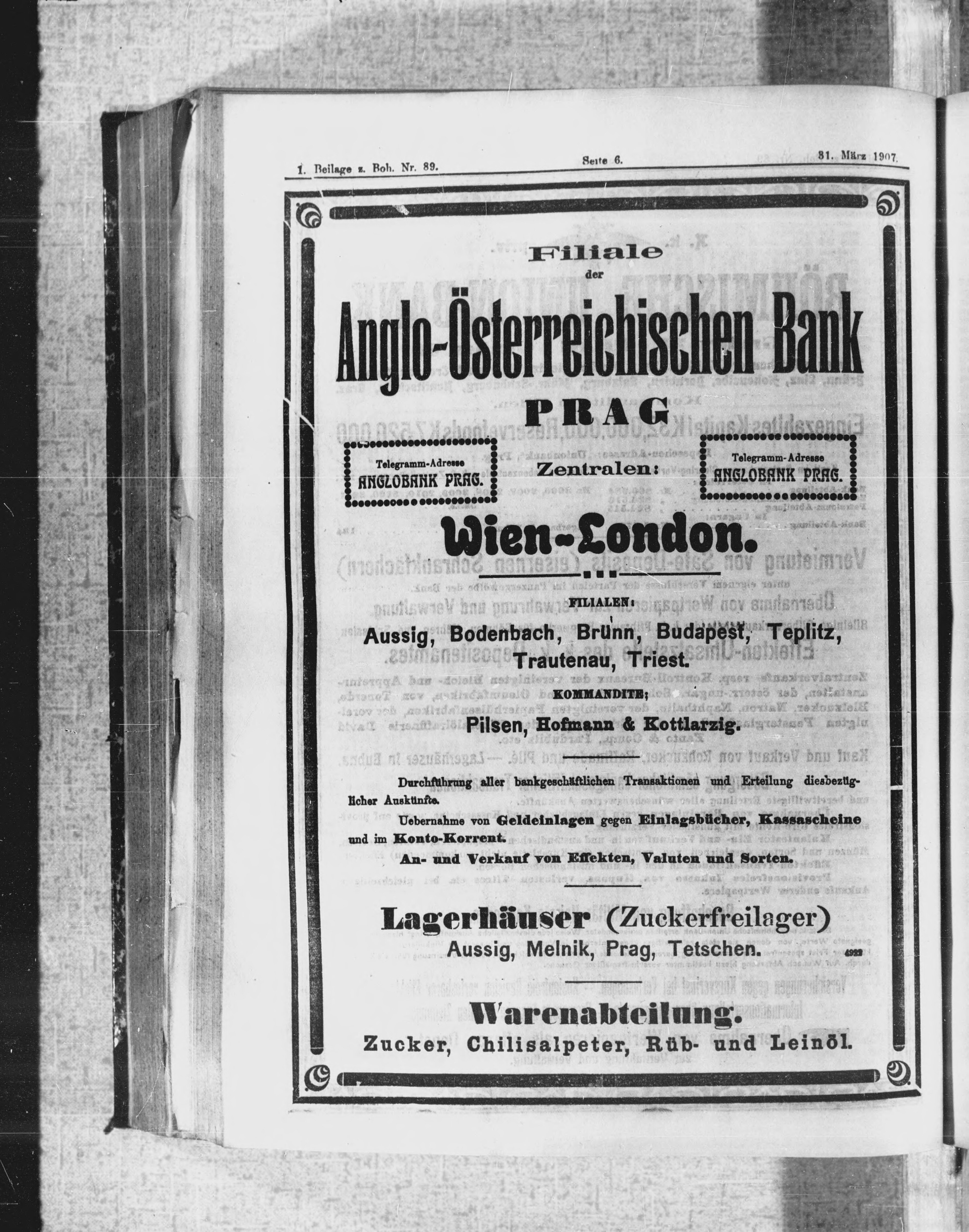 * Datum vydání výtisku: 31.3.1907 Číslo výtisku: 89 Typ výtisku: příloha