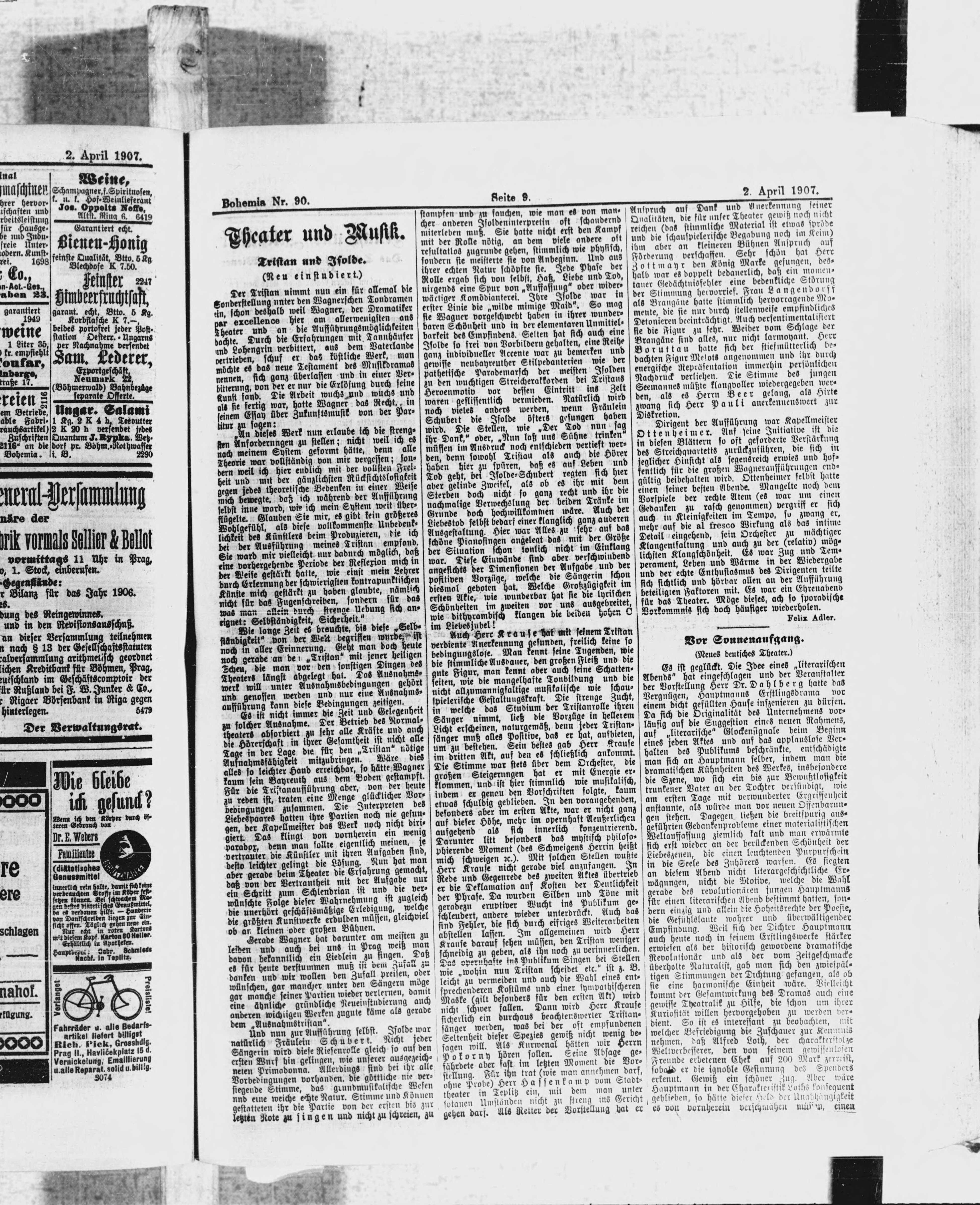 * Datum vydání výtisku: 2.4.1907 Číslo výtisku: 90 Poznámky k výtisku: polední vydání