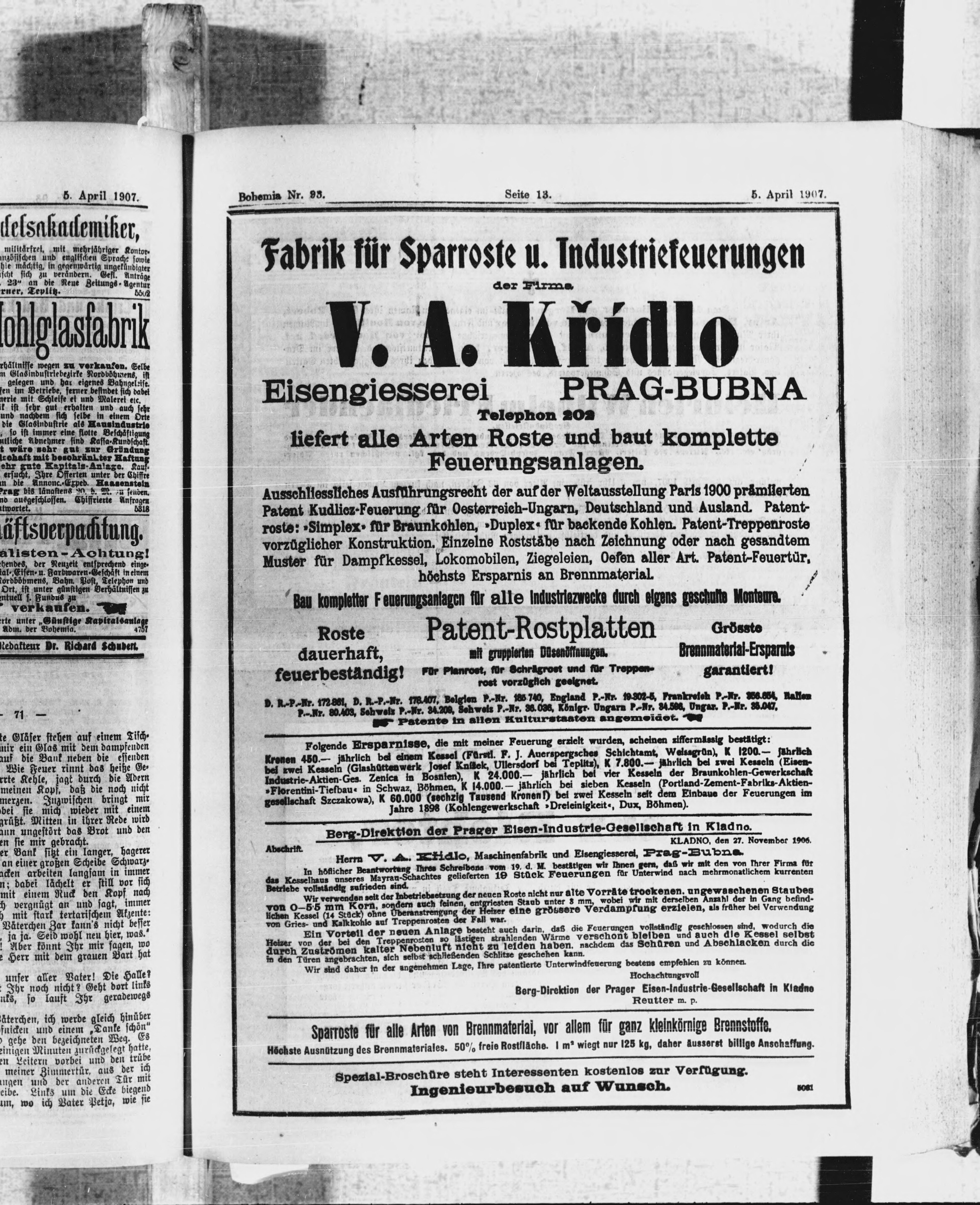 * Datum vydání výtisku: 5.4.1907 Číslo výtisku: 93 Poznámky k výtisku: ranní vydání