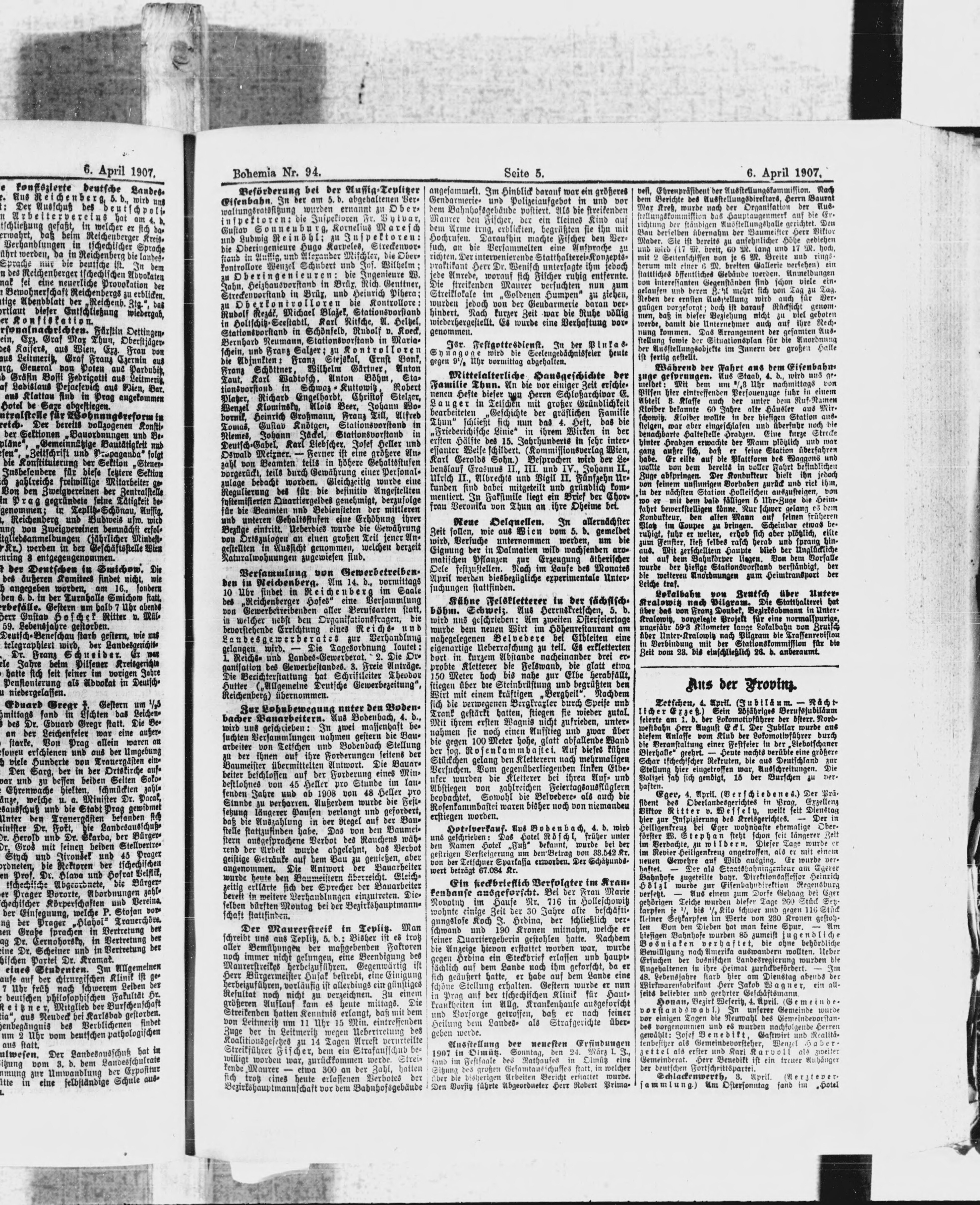 * Datum vydání výtisku: 6.4.1907 Číslo výtisku: 94 Poznámky k výtisku: ranní vydání