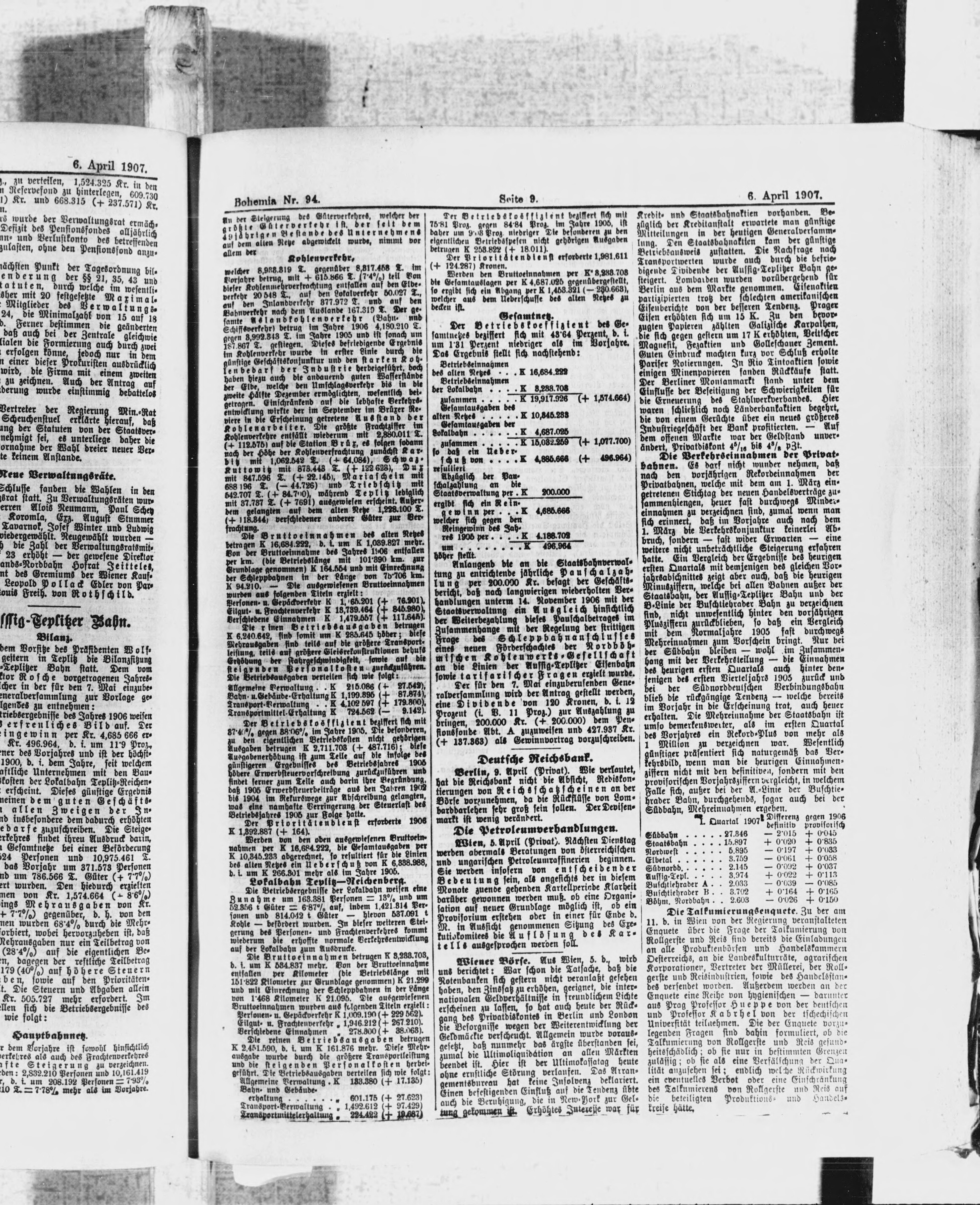 * Datum vydání výtisku: 6.4.1907 Číslo výtisku: 94 Poznámky k výtisku: ranní vydání