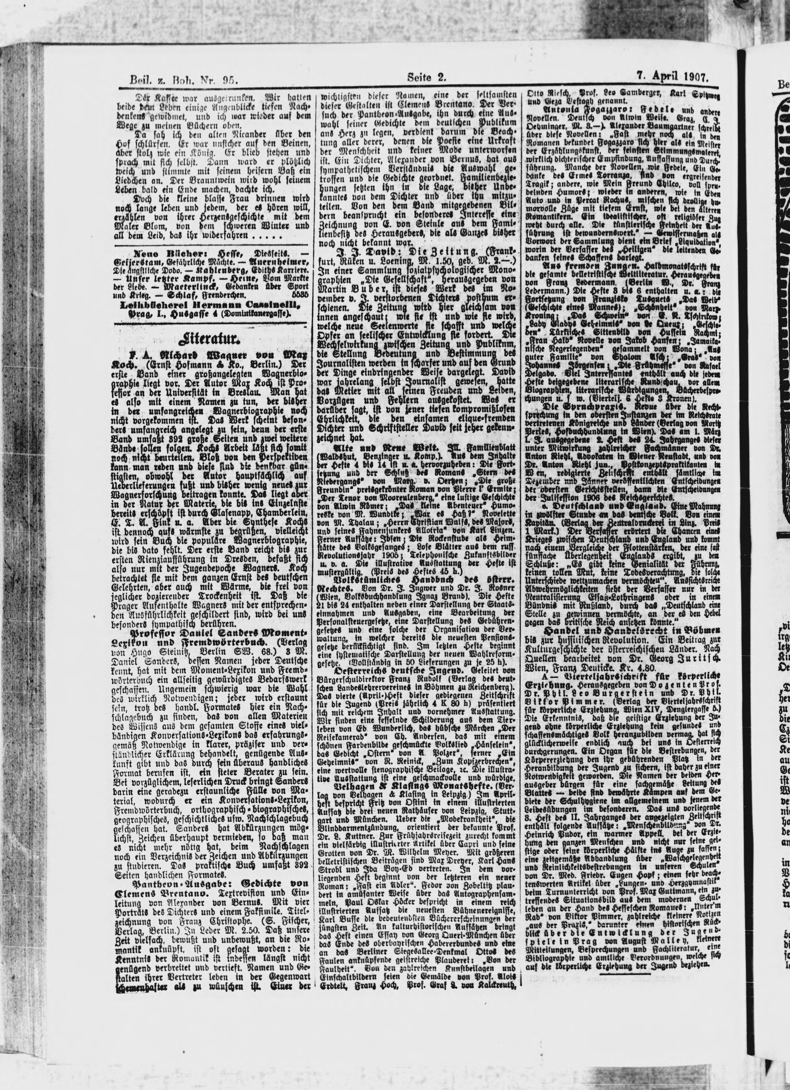 * Datum vydání výtisku: 7.4.1907 Číslo výtisku: 95 Typ výtisku: příloha