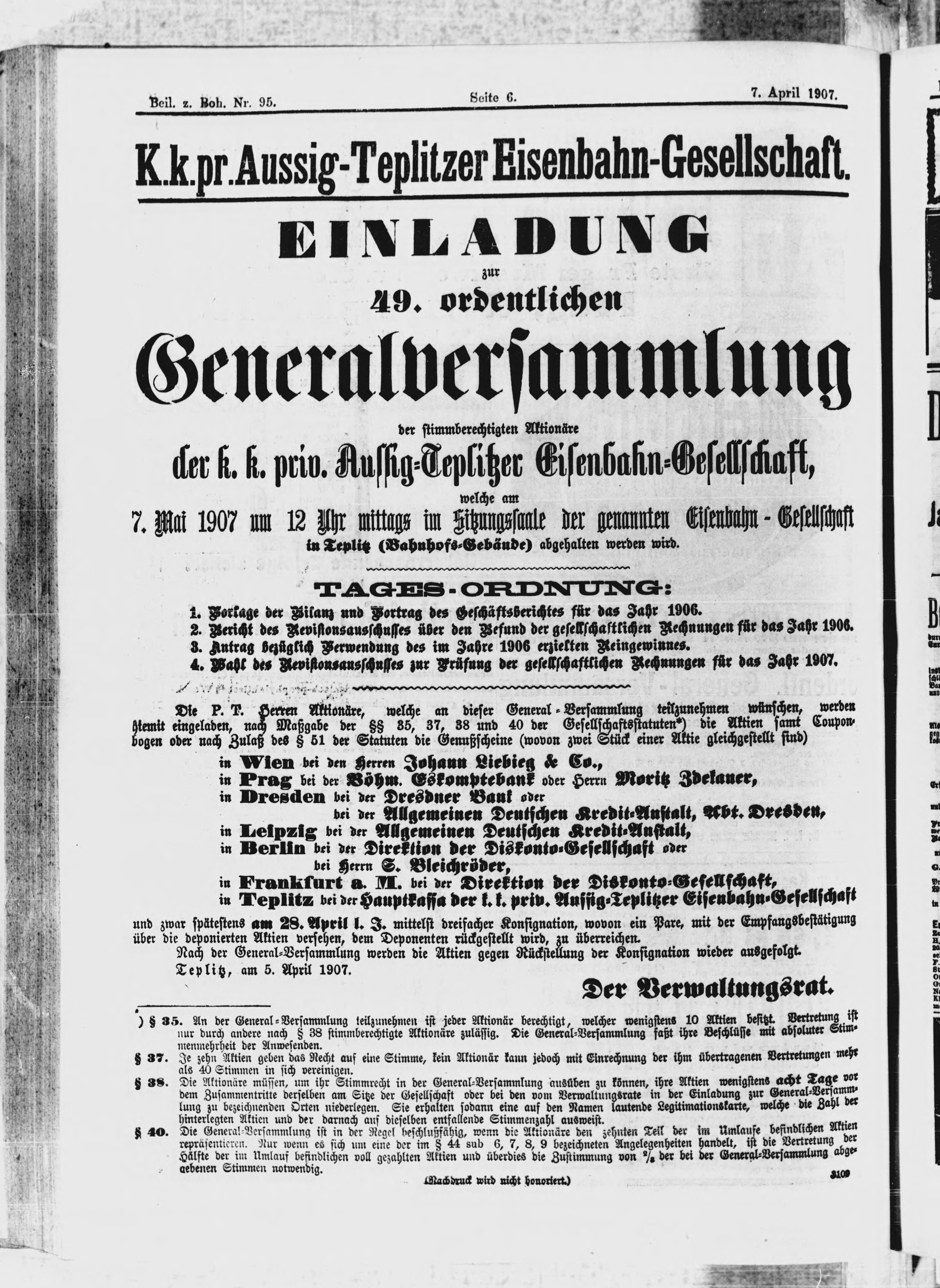 * Datum vydání výtisku: 7.4.1907 Číslo výtisku: 95 Typ výtisku: příloha