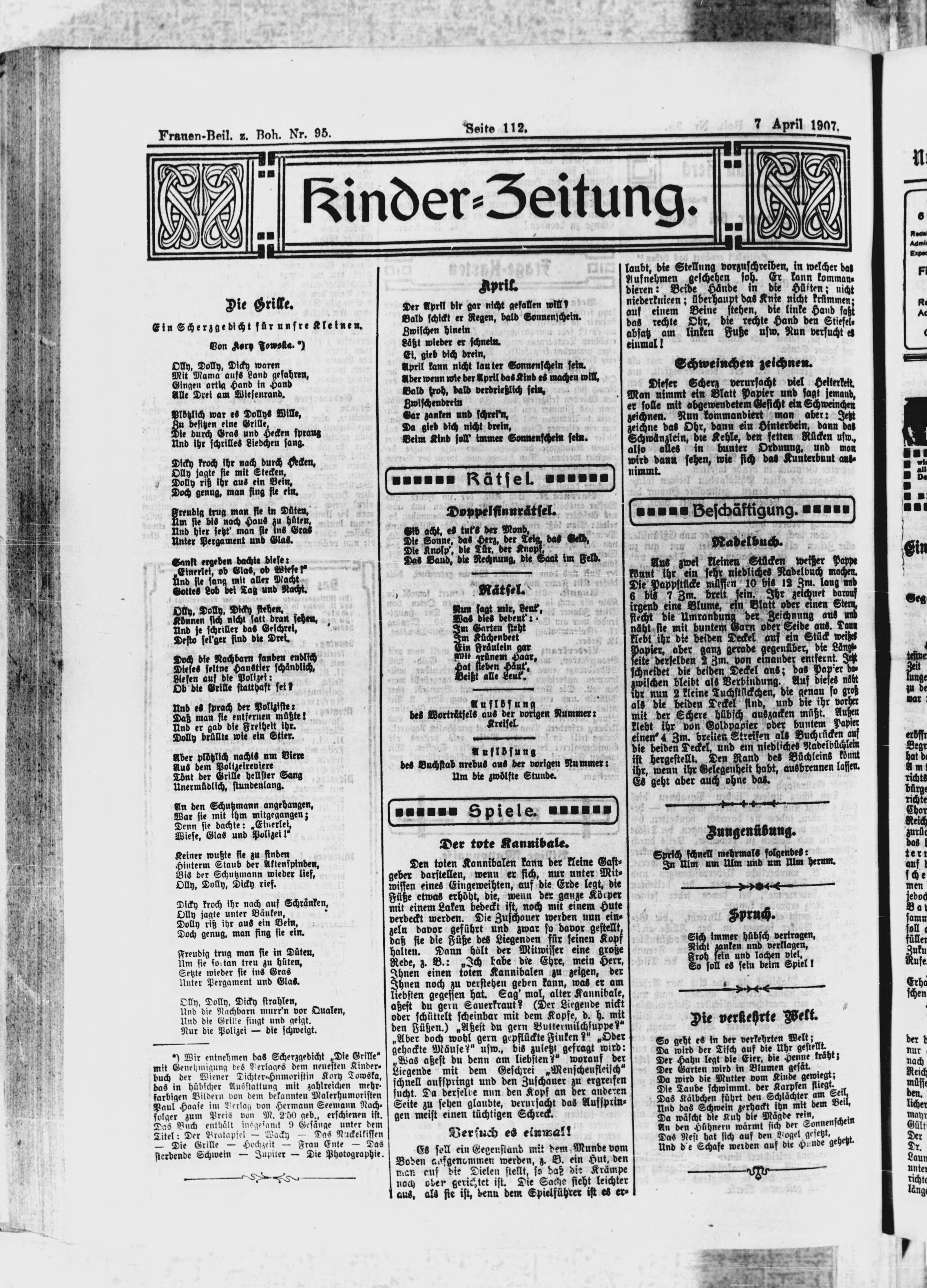 * Datum vydání výtisku: 7.4.1907 Číslo výtisku: 95 Typ výtisku: příloha