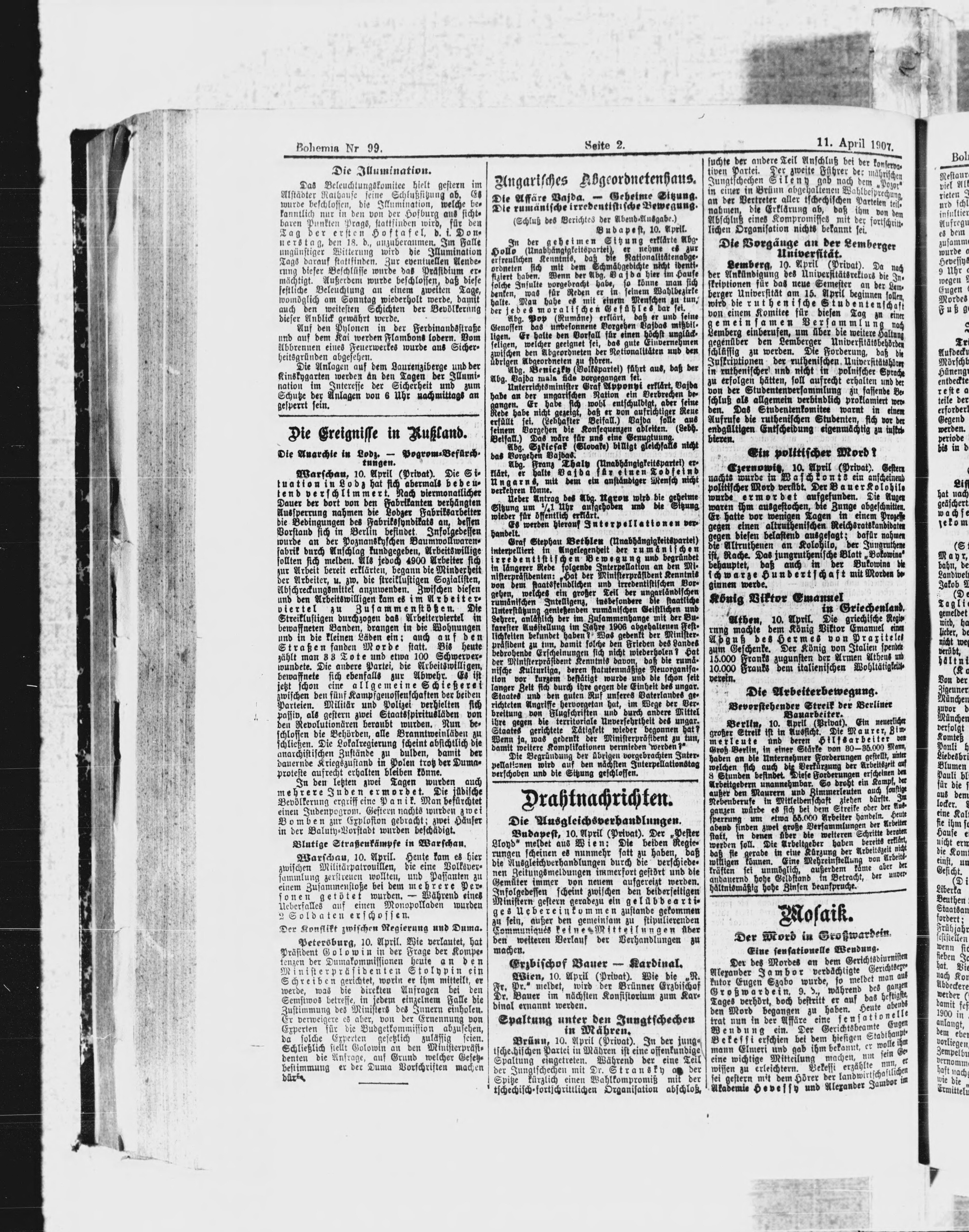 * Datum vydání výtisku: 11.4.1907 Číslo výtisku: 99 Poznámky k výtisku: ranní vydání