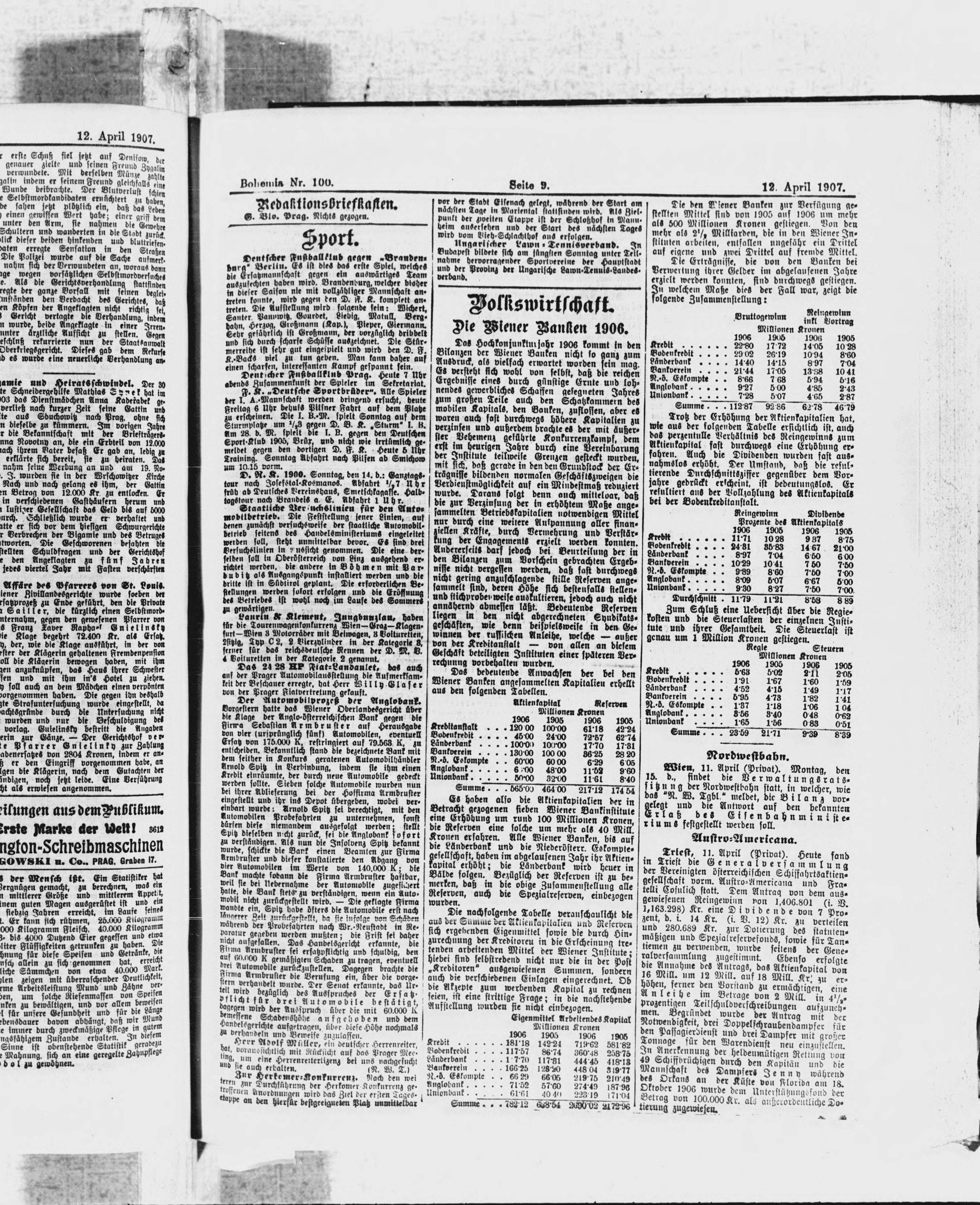* Datum vydání výtisku: 12.4.1907 Číslo výtisku: 100 Poznámky k výtisku: ranní vydání
