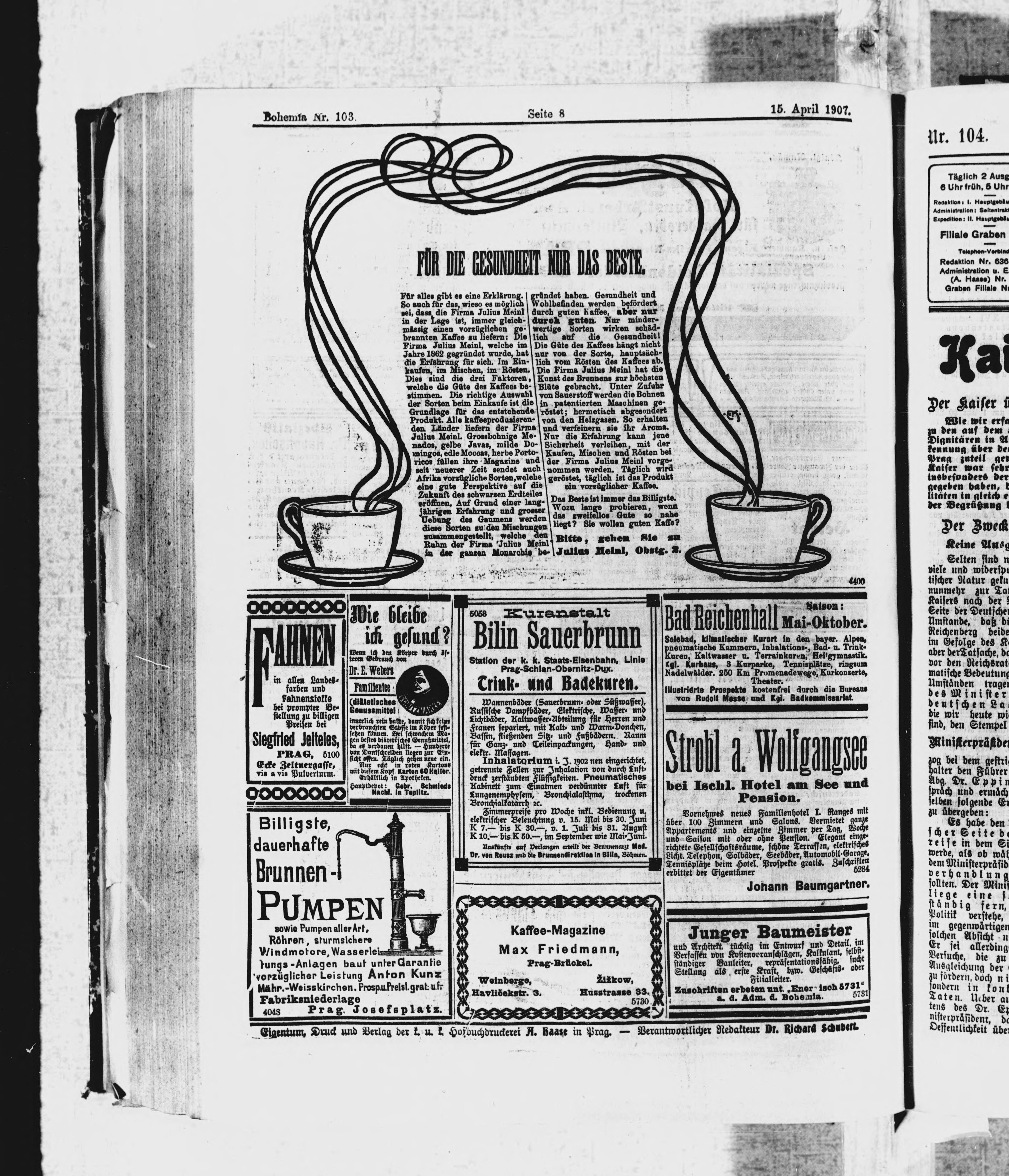 * Datum vydání výtisku: 15.4.1907 Číslo výtisku: 103 Poznámky k výtisku: polední vydání