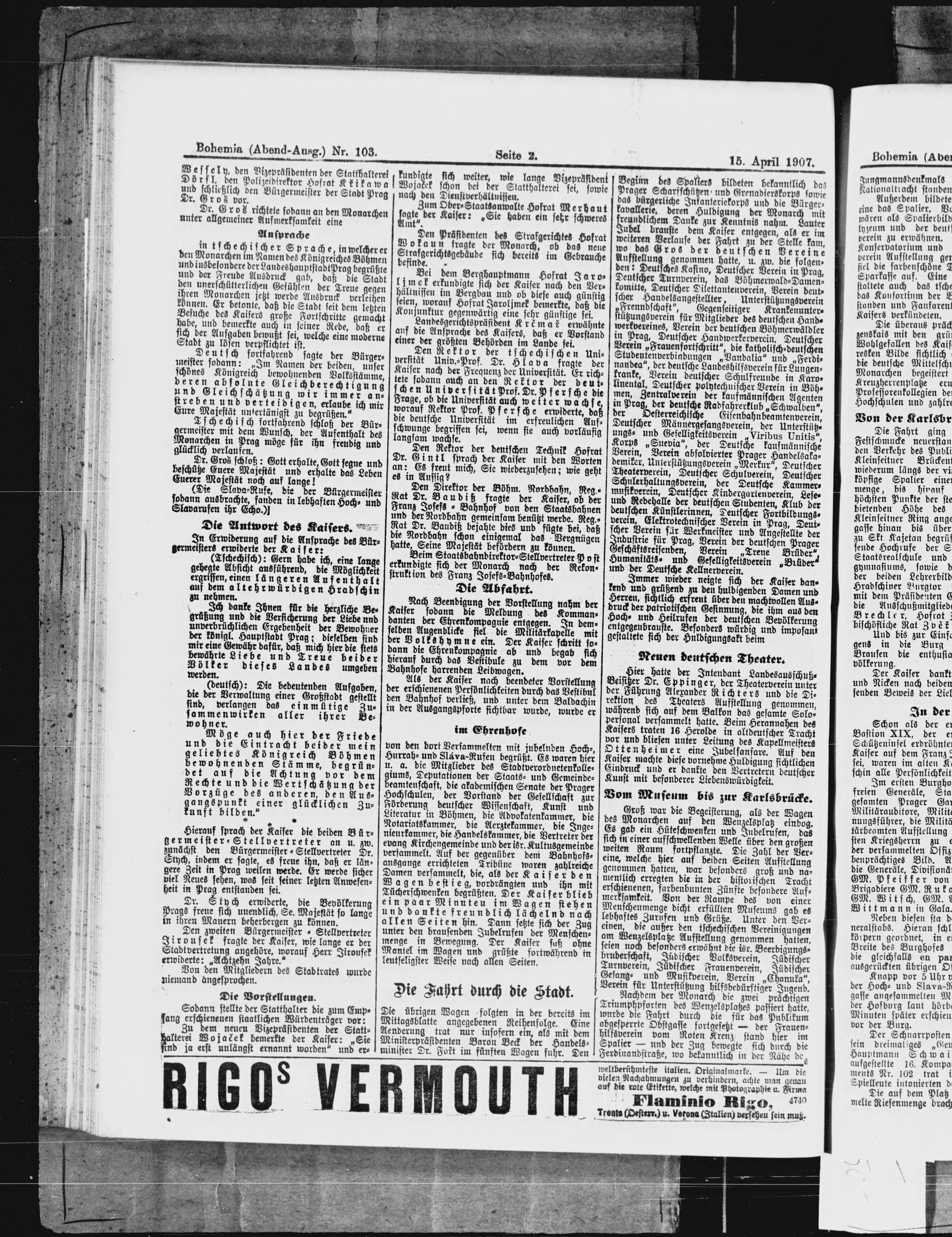 * Datum vydání výtisku: 15.4.1907 Číslo výtisku: 103 Poznámky k výtisku: večerní vydání