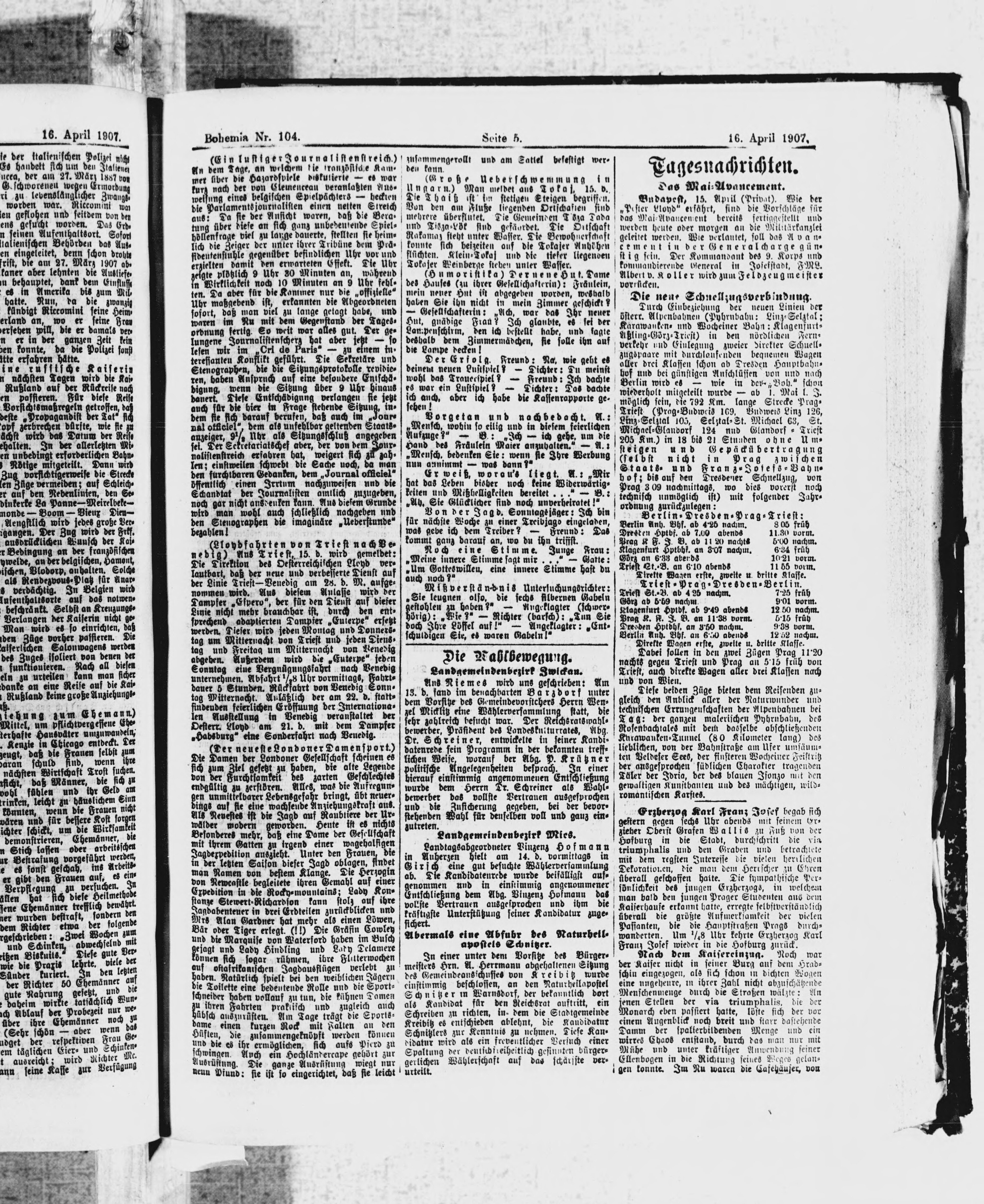 * Datum vydání výtisku: 16.4.1907 Číslo výtisku: 104 Poznámky k výtisku: ranní vydání