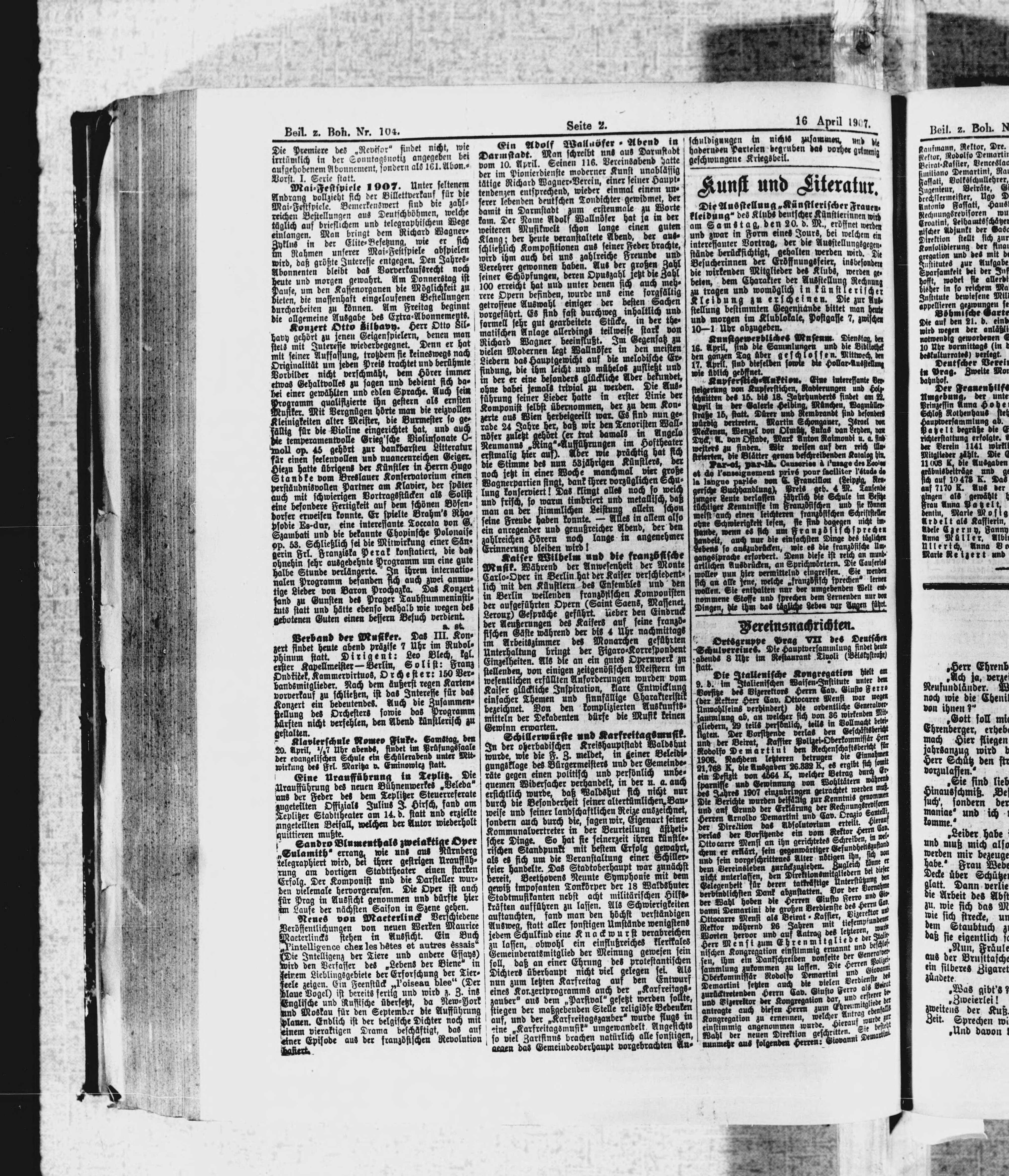 * Datum vydání výtisku: 16.4.1907 Číslo výtisku: 104 Typ výtisku: příloha