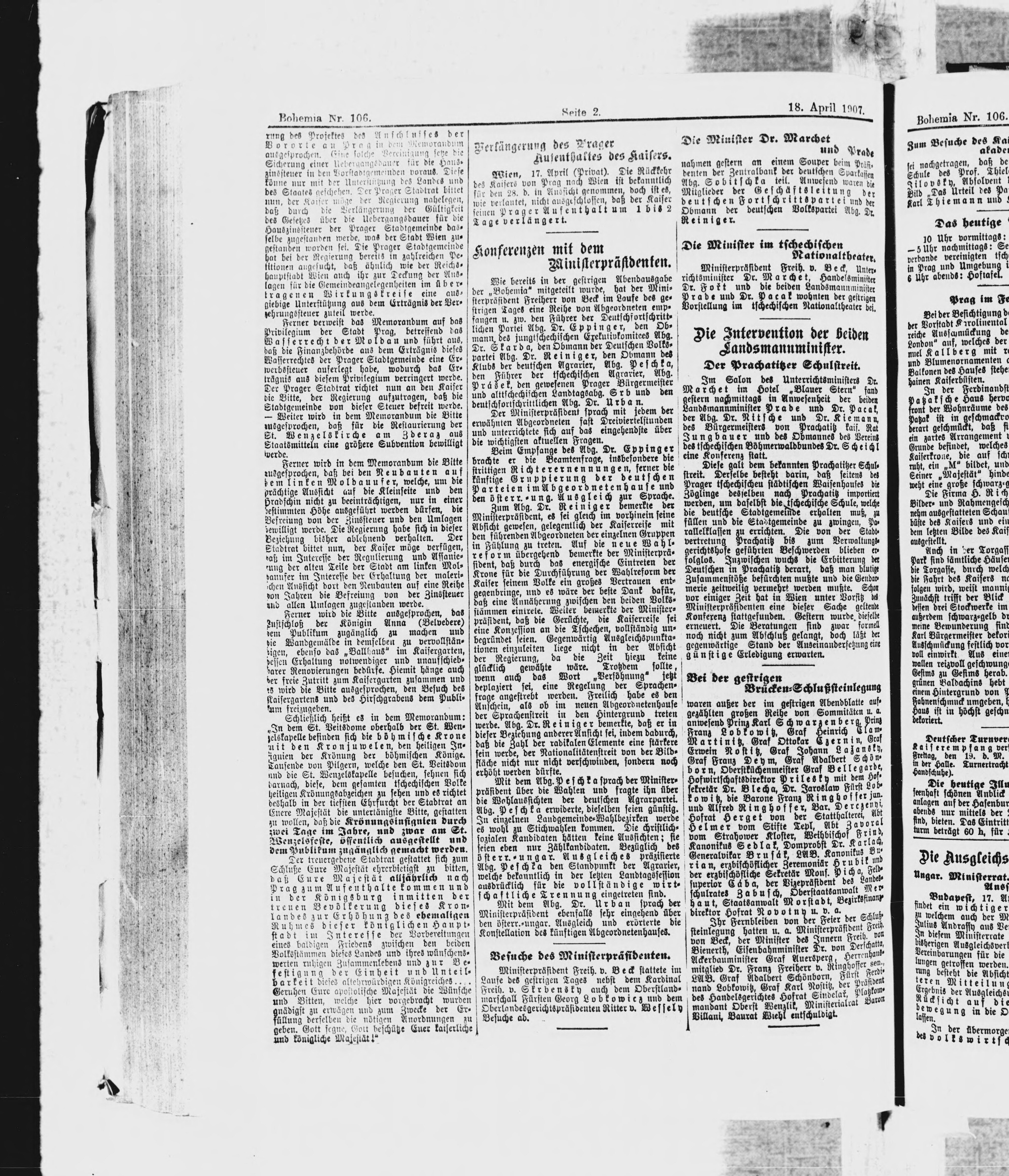 * Datum vydání výtisku: 18.4.1907 Číslo výtisku: 106 Poznámky k výtisku: ranní vydání