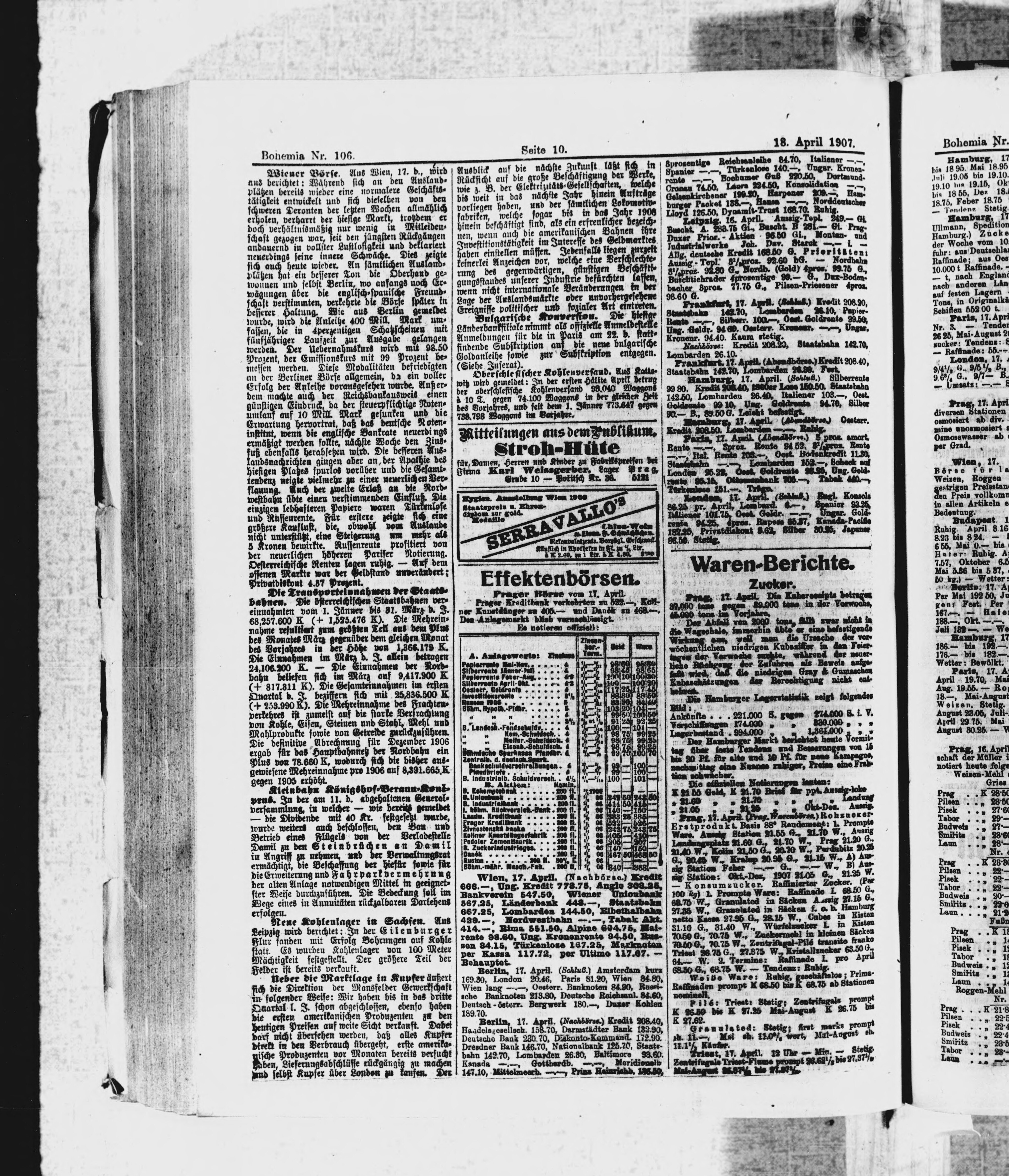 * Datum vydání výtisku: 18.4.1907 Číslo výtisku: 106 Poznámky k výtisku: ranní vydání