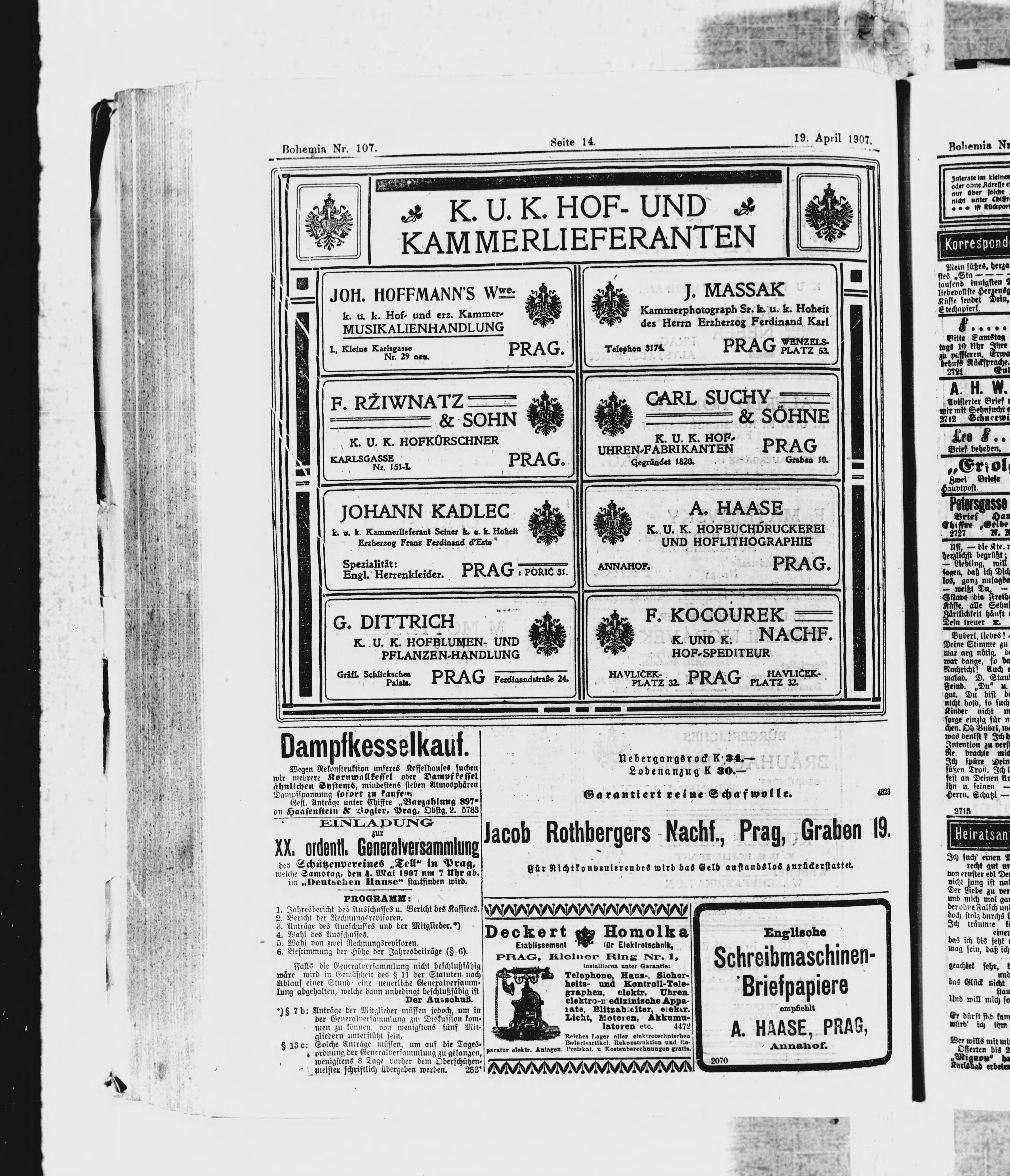 * Datum vydání výtisku: 19.4.1907 Číslo výtisku: 107 Poznámky k výtisku: ranní vydání