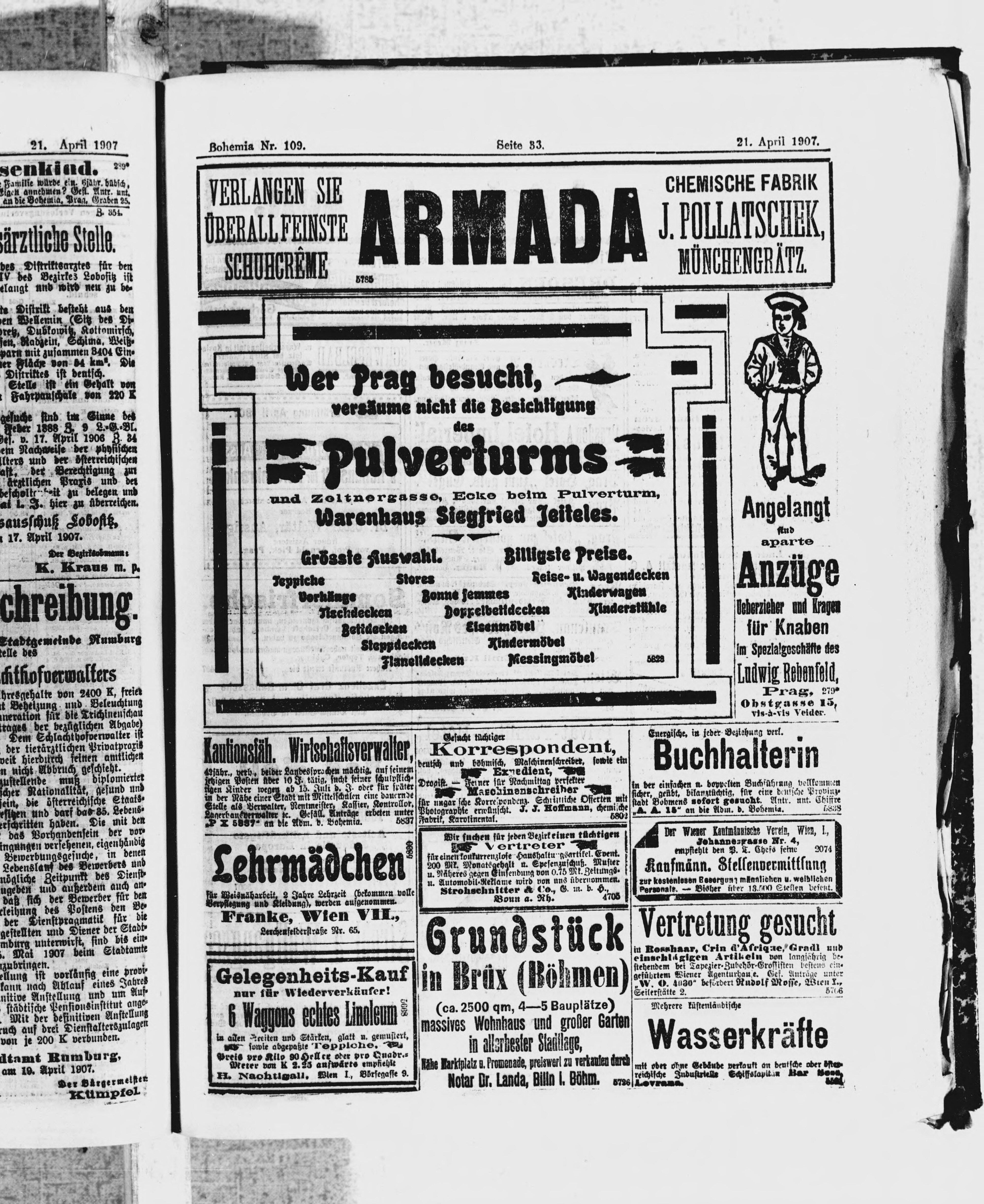 * Datum vydání výtisku: 21.4.1907 Číslo výtisku: 109 Poznámky k výtisku: ranní vydání