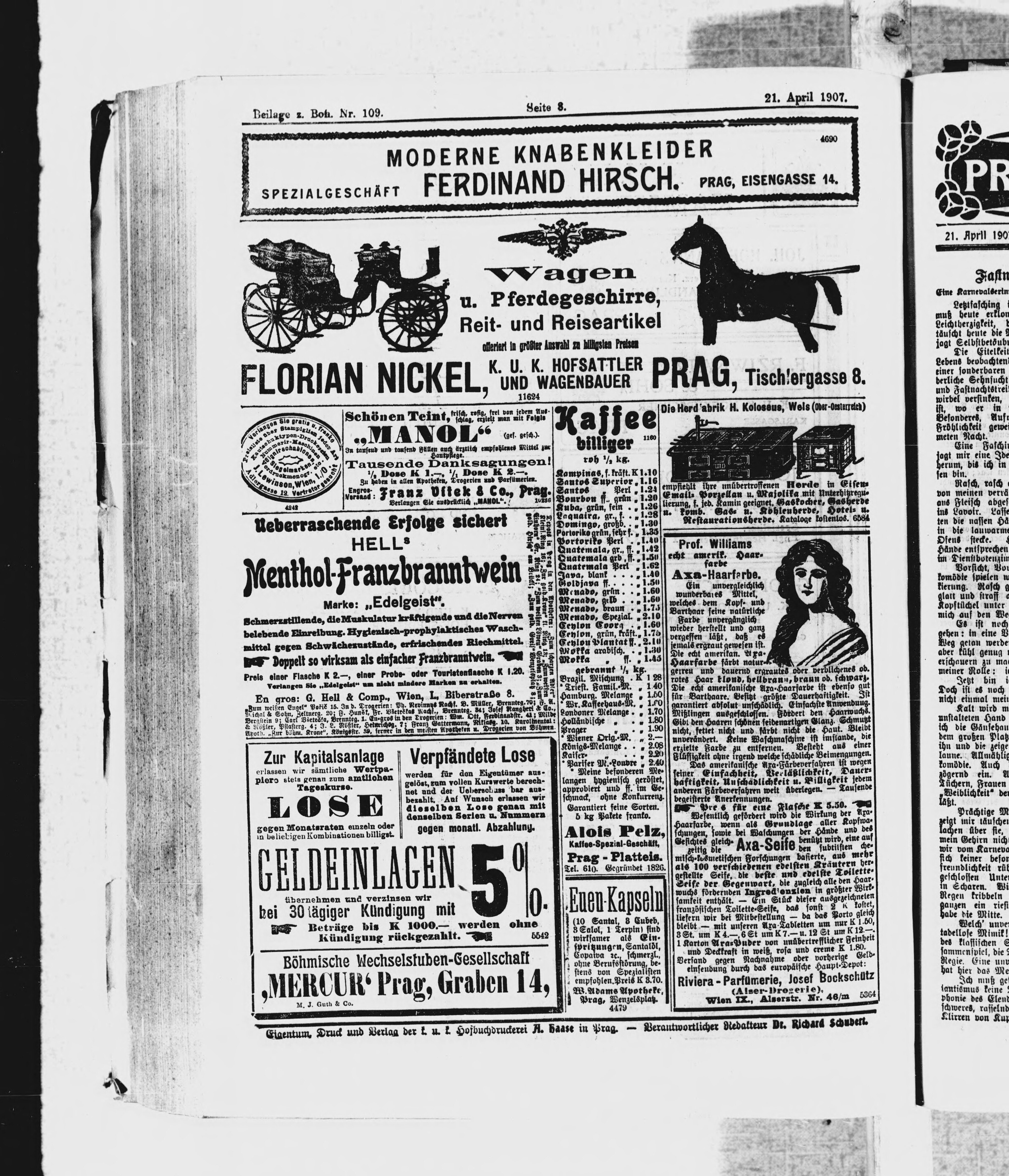 * Datum vydání výtisku: 21.4.1907 Číslo výtisku: 109 Typ výtisku: příloha