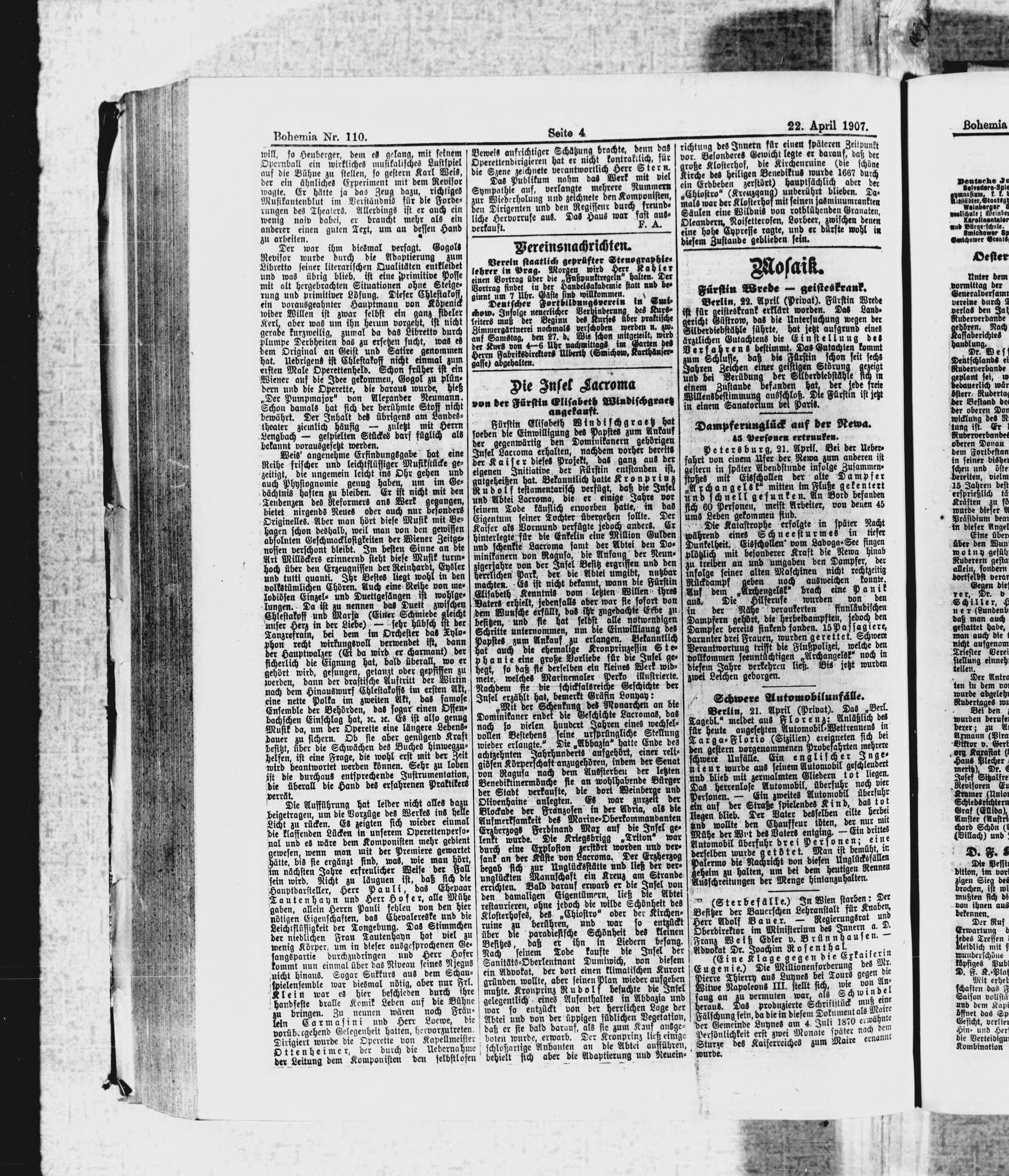 * Datum vydání výtisku: 22.4.1907 Číslo výtisku: 110 Poznámky k výtisku: polední vydání