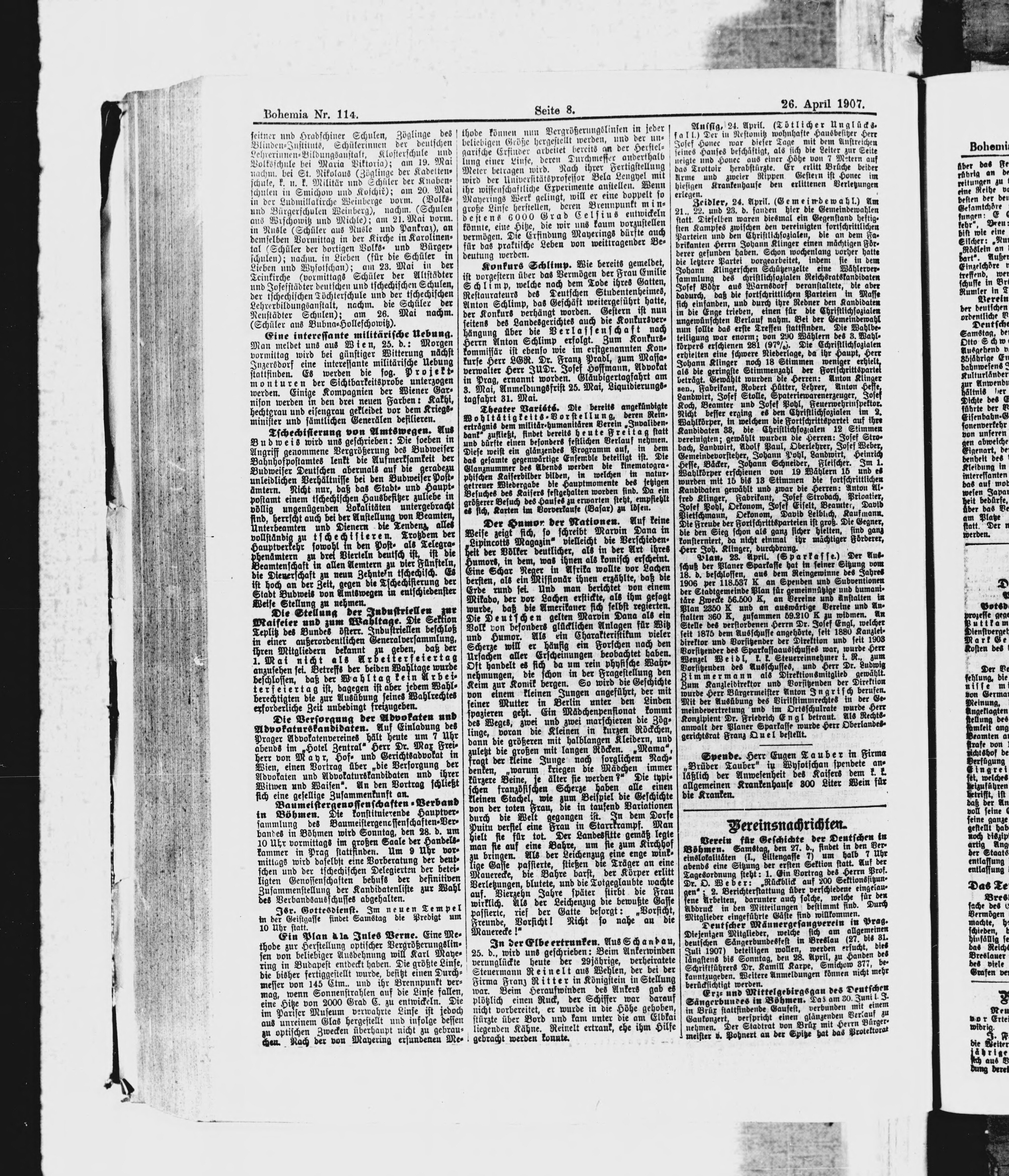 * Datum vydání výtisku: 26.4.1907 Číslo výtisku: 114 Poznámky k výtisku: ranní vydání