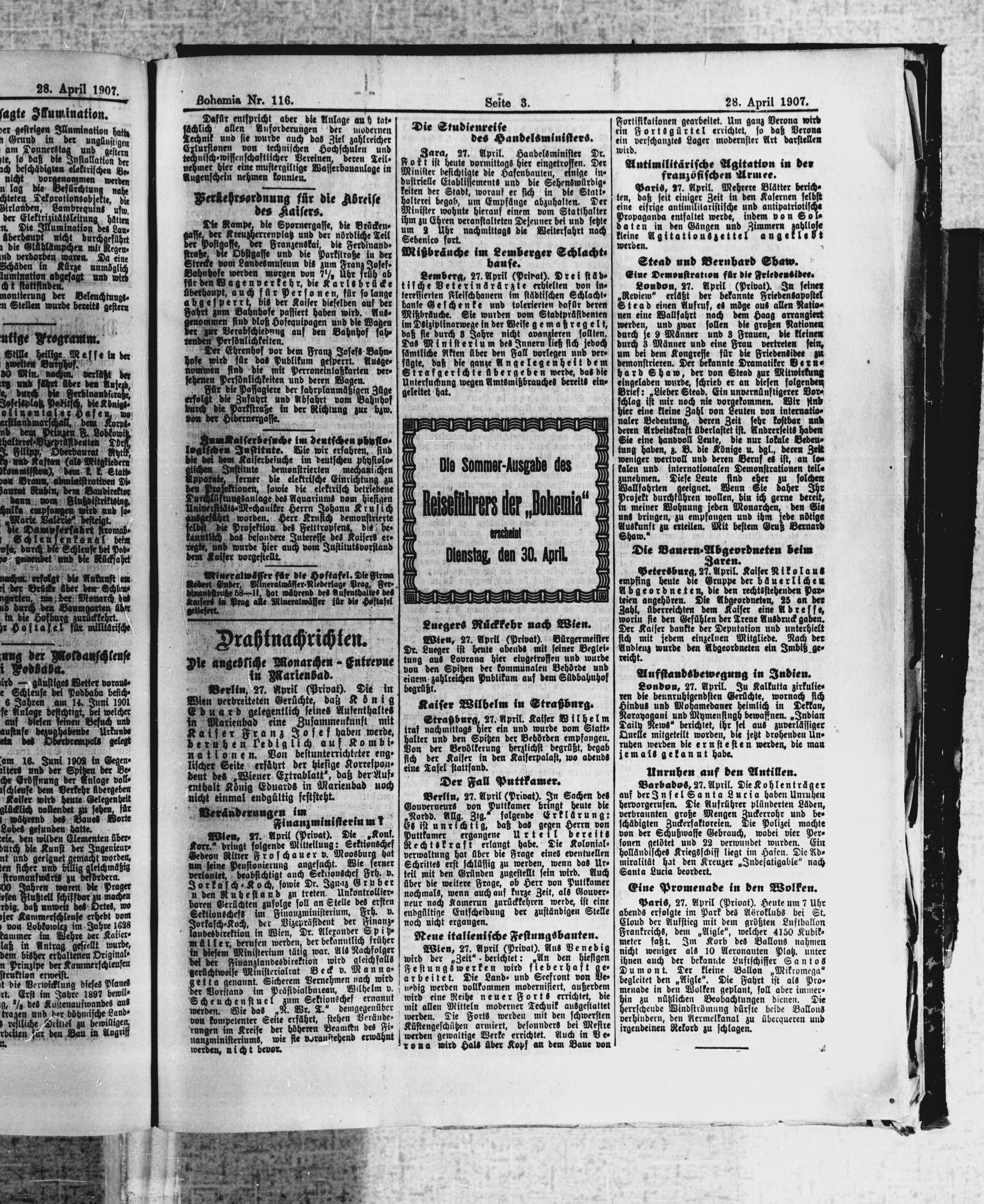 * Datum vydání výtisku: 28.4.1907 Číslo výtisku: 116 Poznámky k výtisku: ranní vydání