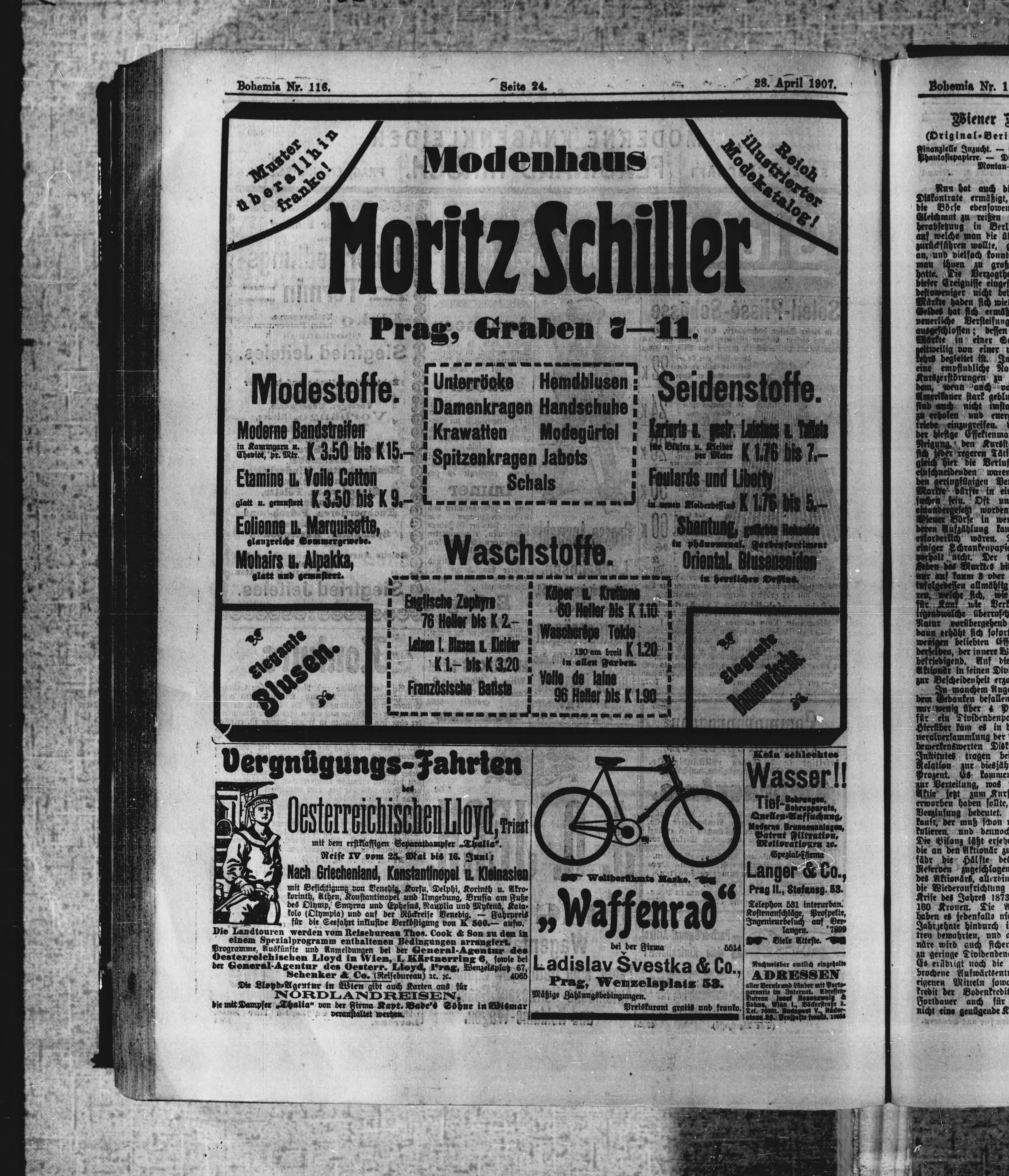 * Datum vydání výtisku: 28.4.1907 Číslo výtisku: 116 Poznámky k výtisku: ranní vydání