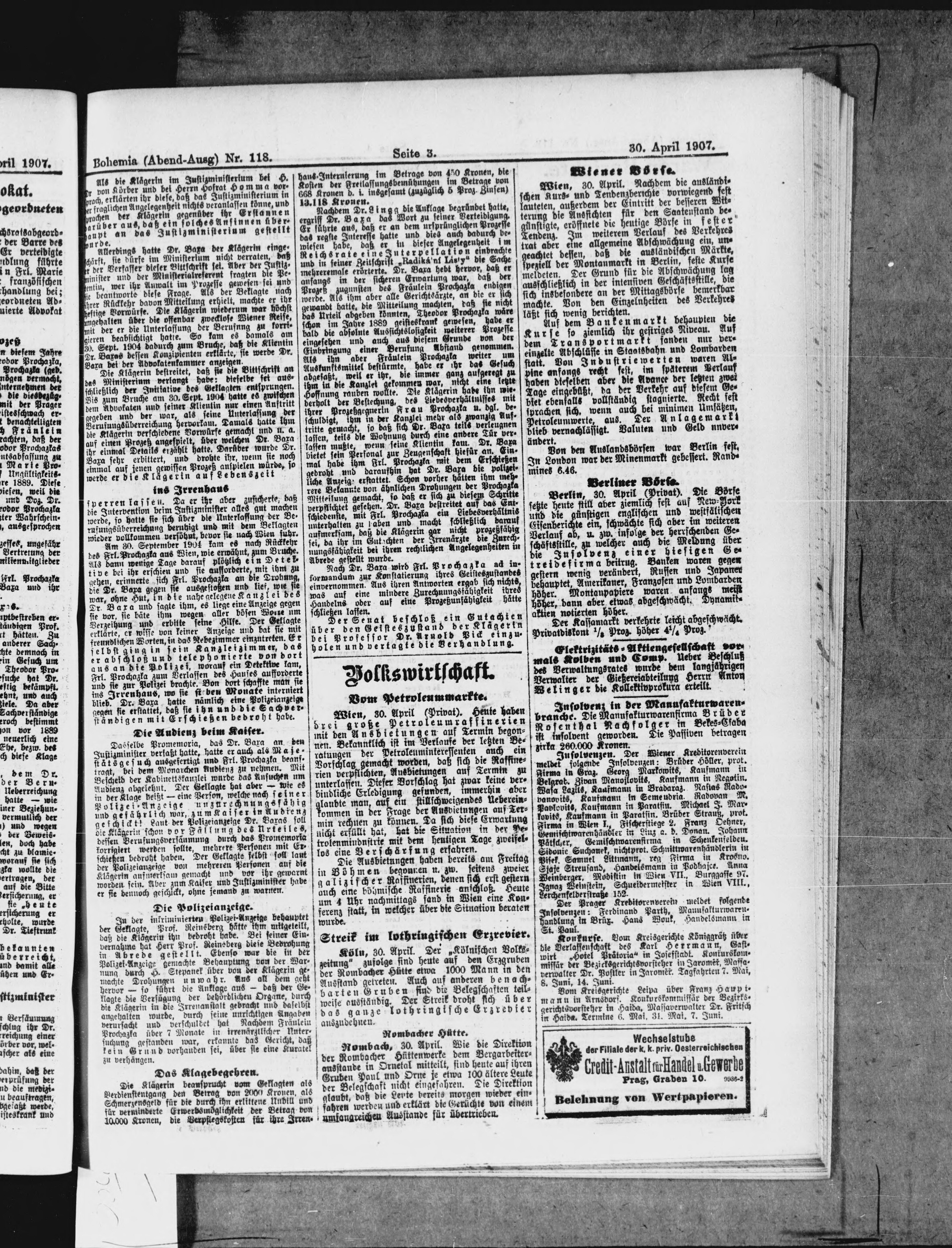 * Datum vydání výtisku: 30.4.1907 Číslo výtisku: 118 Poznámky k výtisku: večerní vydání