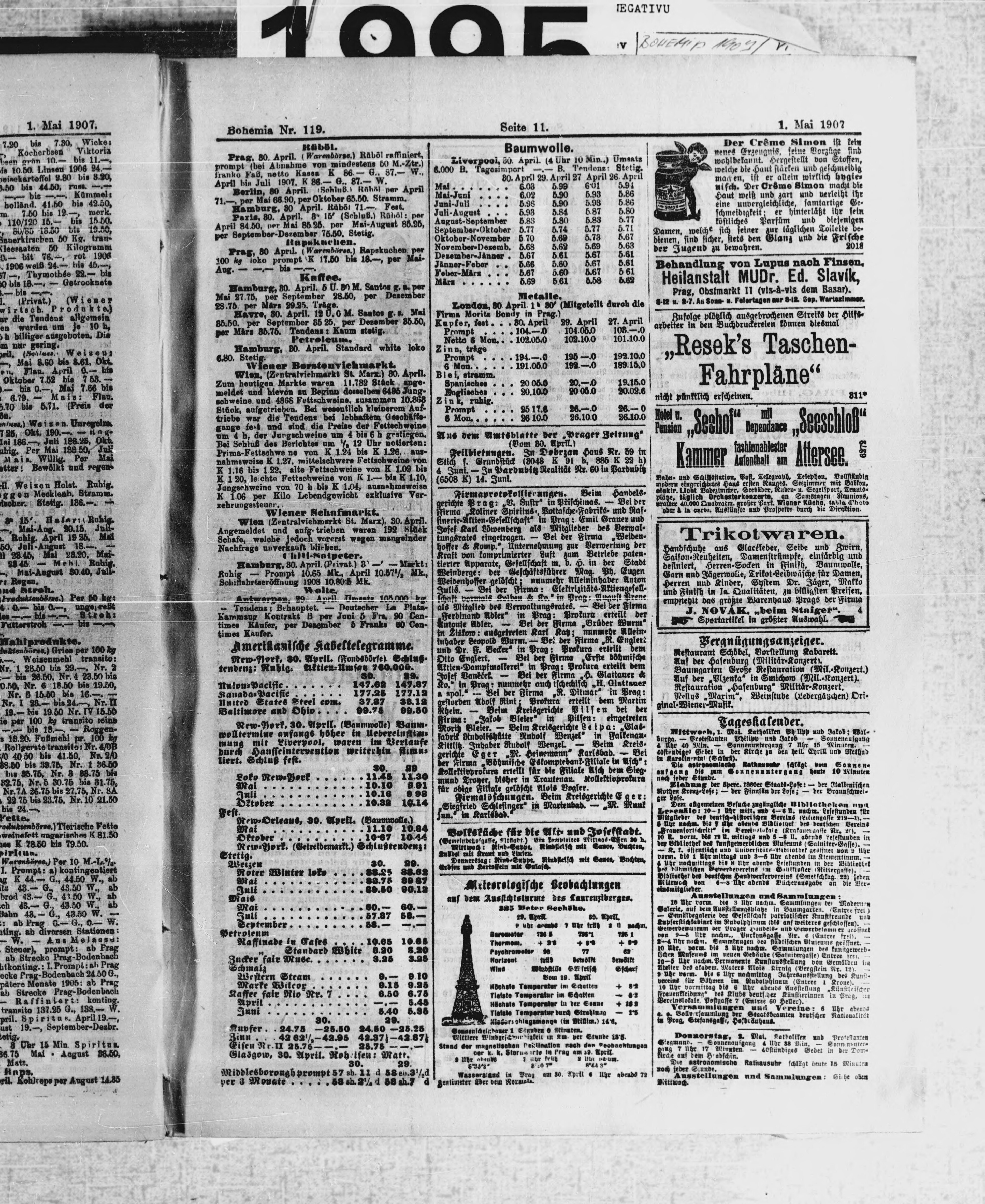 * Datum vydání výtisku: 1.5.1907 Číslo výtisku: 119 Poznámky k výtisku: ranní vydání