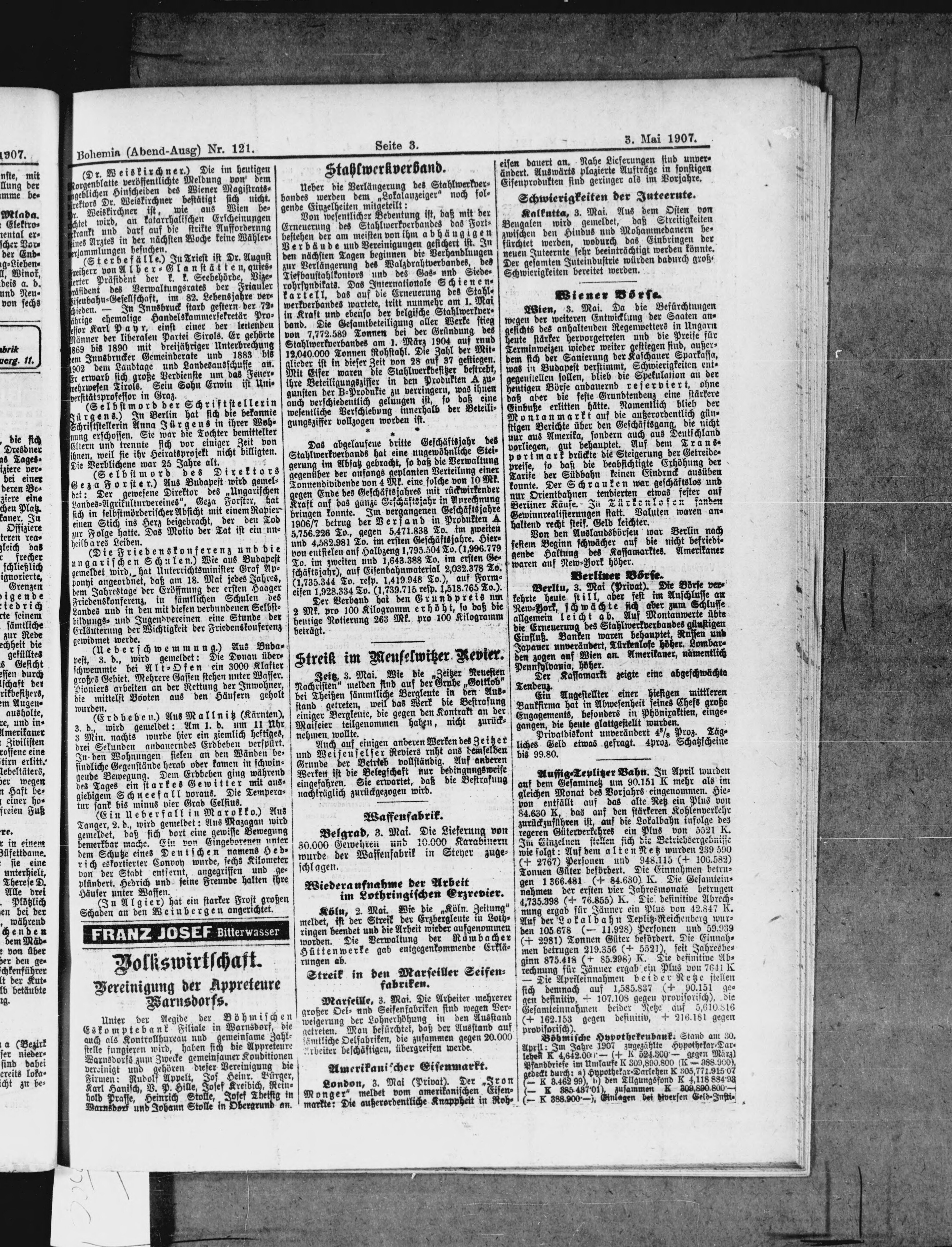 * Datum vydání výtisku: 3.5.1907 Číslo výtisku: 121 Poznámky k výtisku: večerní vydání