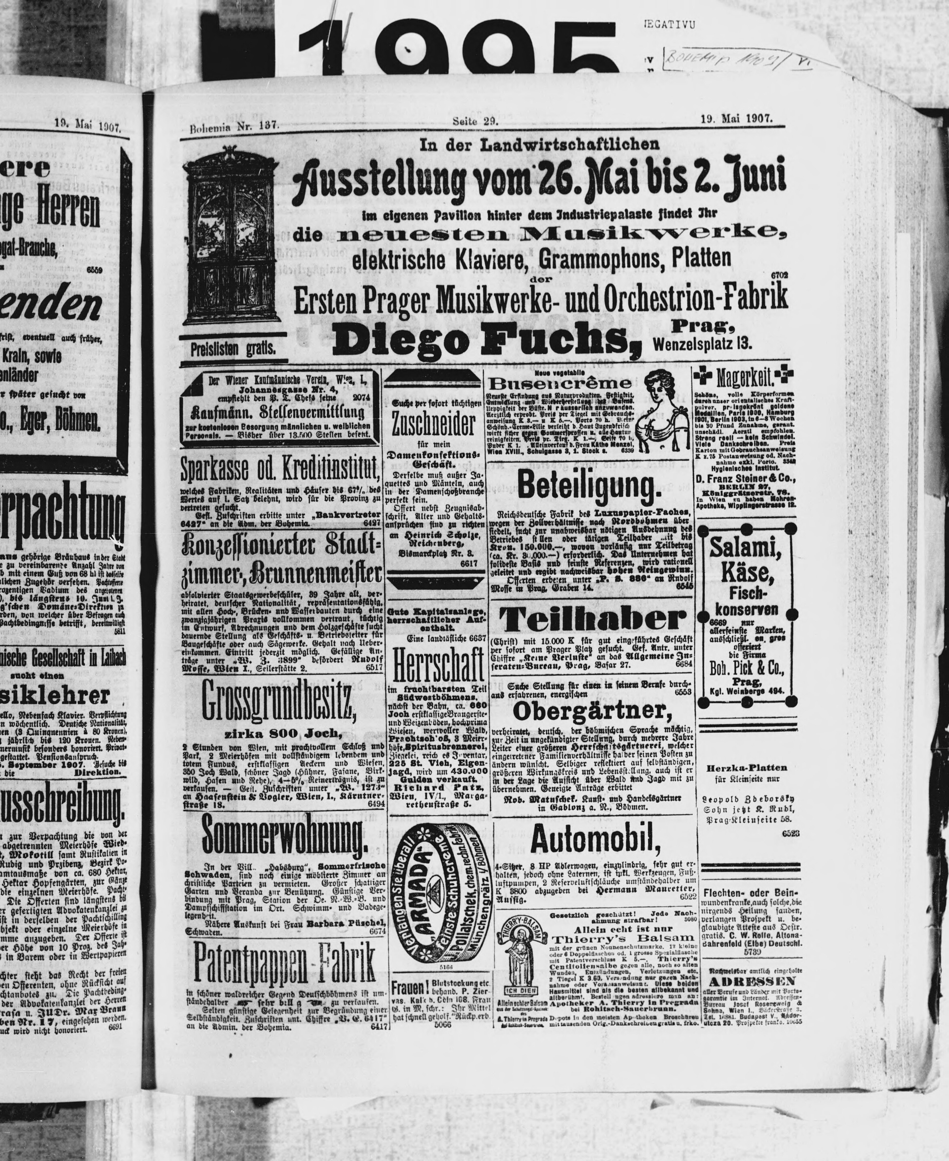 * Datum vydání výtisku: 19.5.1907 Číslo výtisku: 137 Poznámky k výtisku: ranní vydání