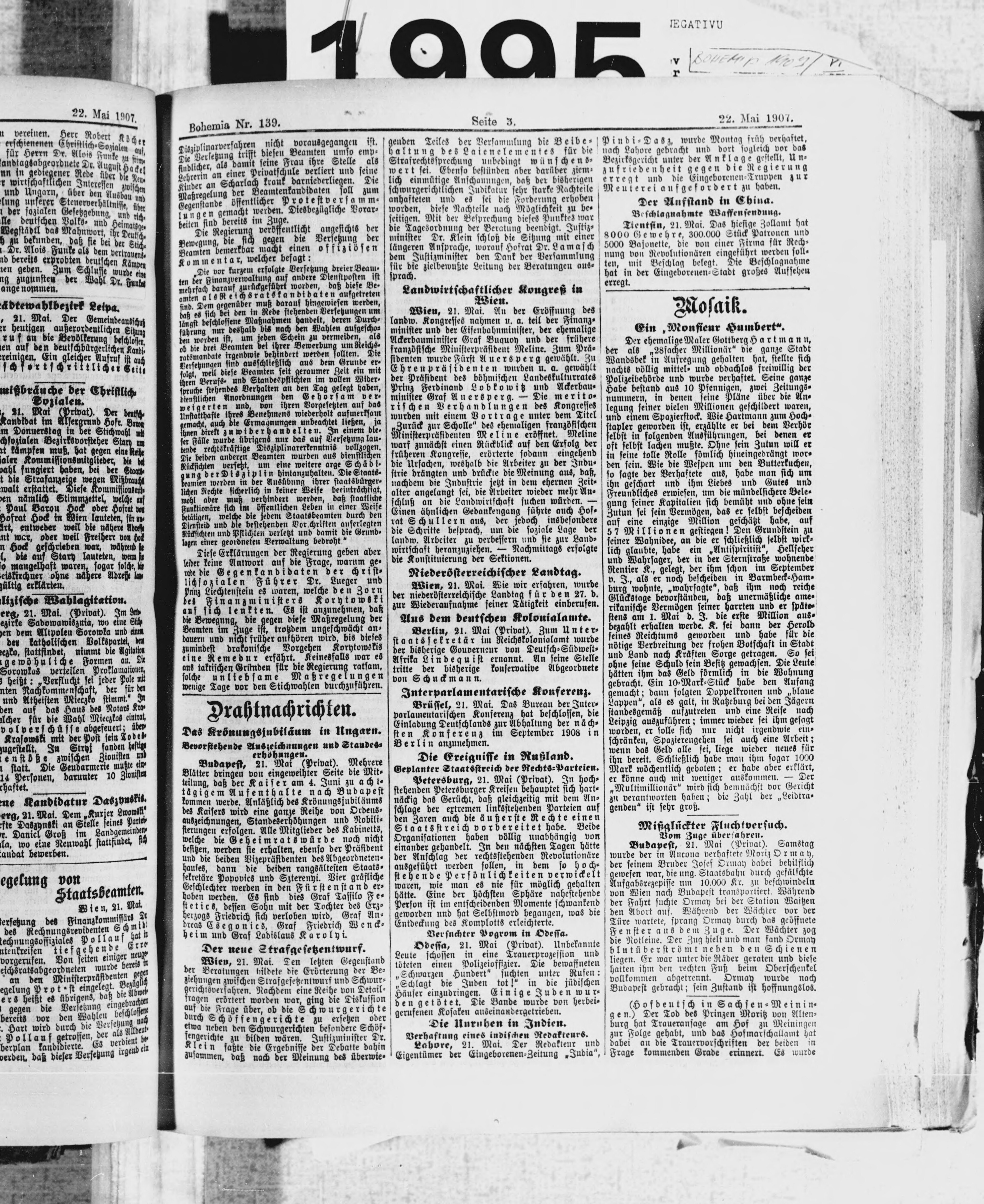 * Datum vydání výtisku: 22.5.1907 Číslo výtisku: 139 Poznámky k výtisku: ranní vydání