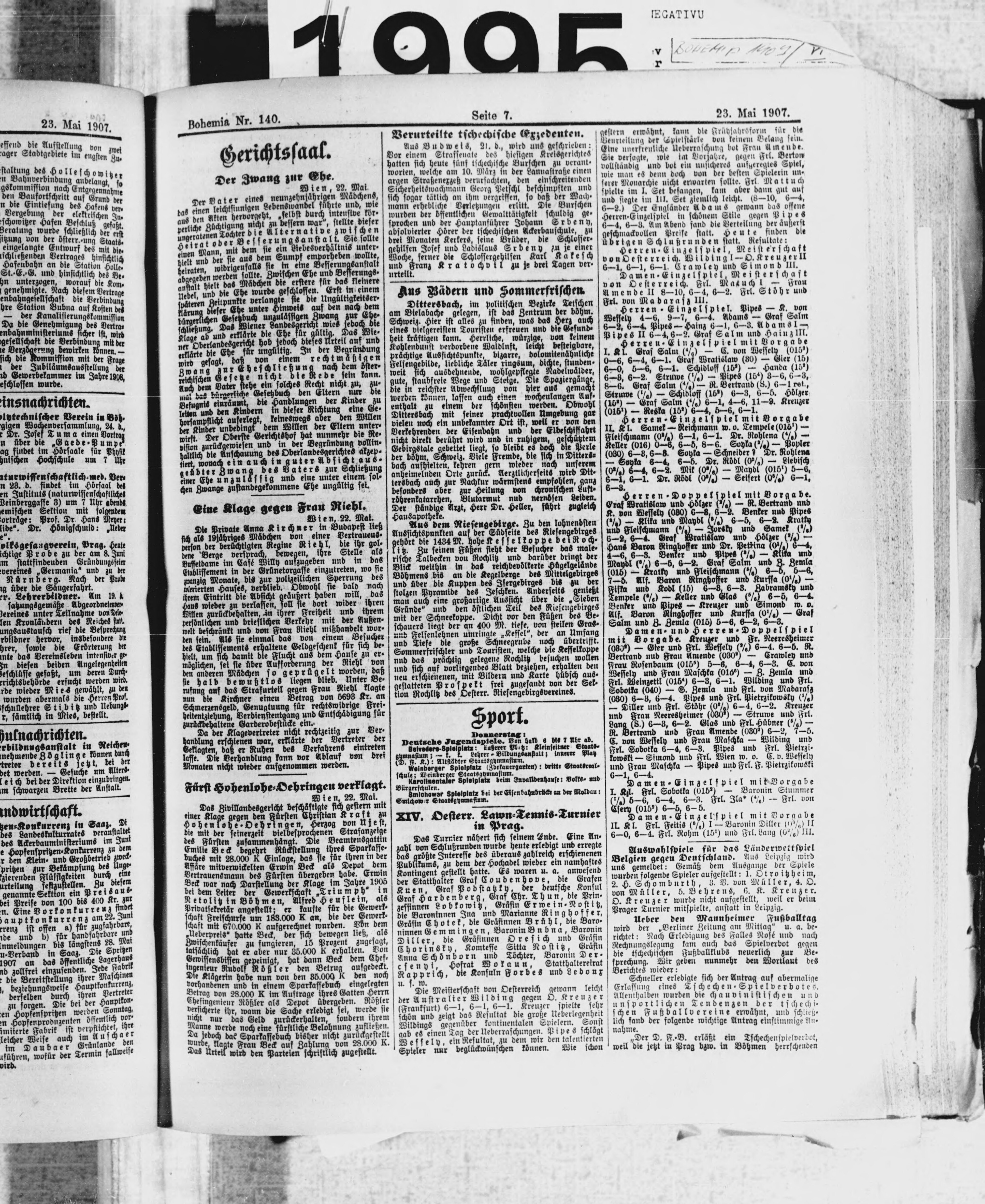 * Datum vydání výtisku: 23.5.1907 Číslo výtisku: 140 Poznámky k výtisku: ranní vydání