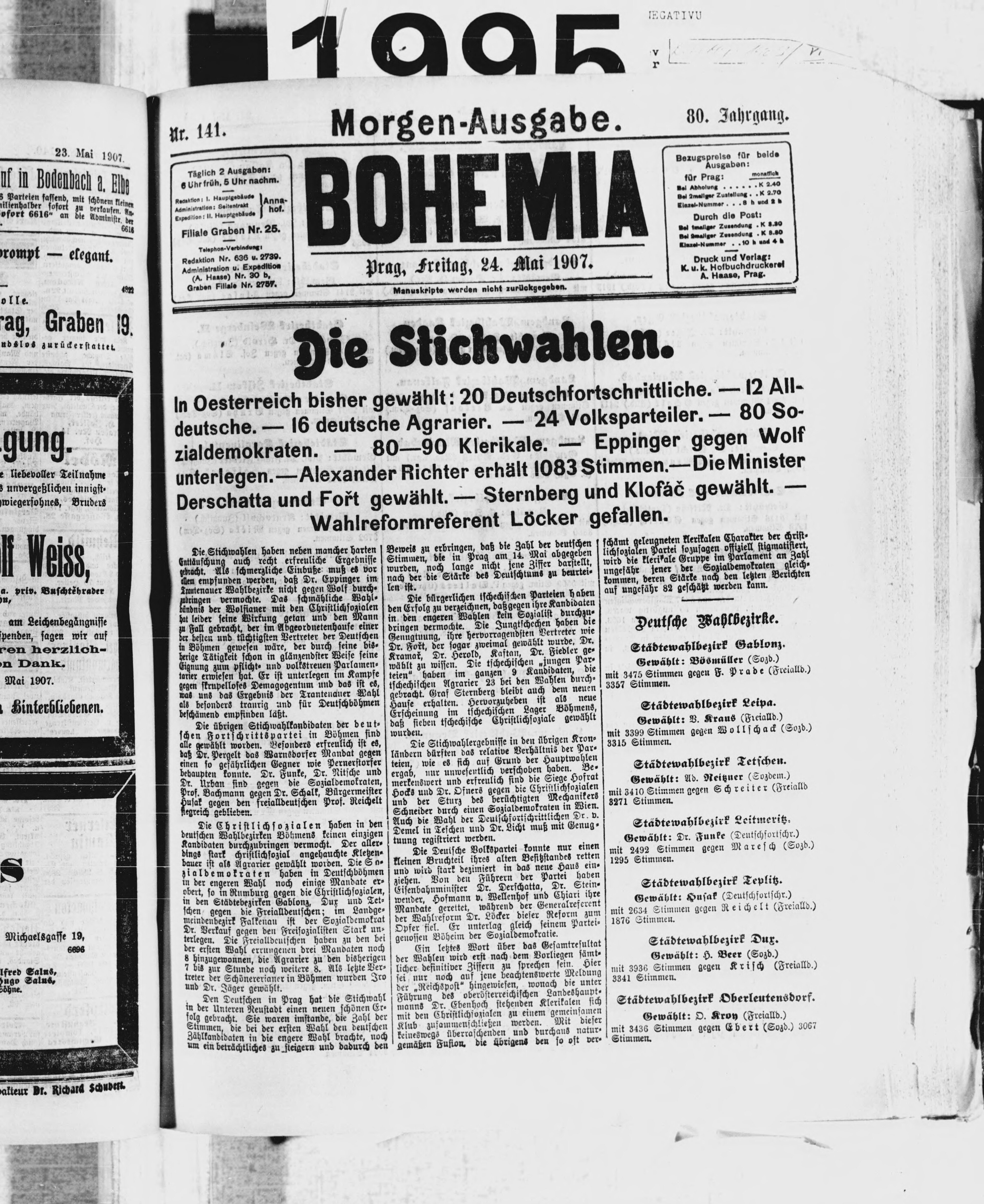 * Datum vydání výtisku: 24.5.1907 Číslo výtisku: 141 Poznámky k výtisku: ranní vydání