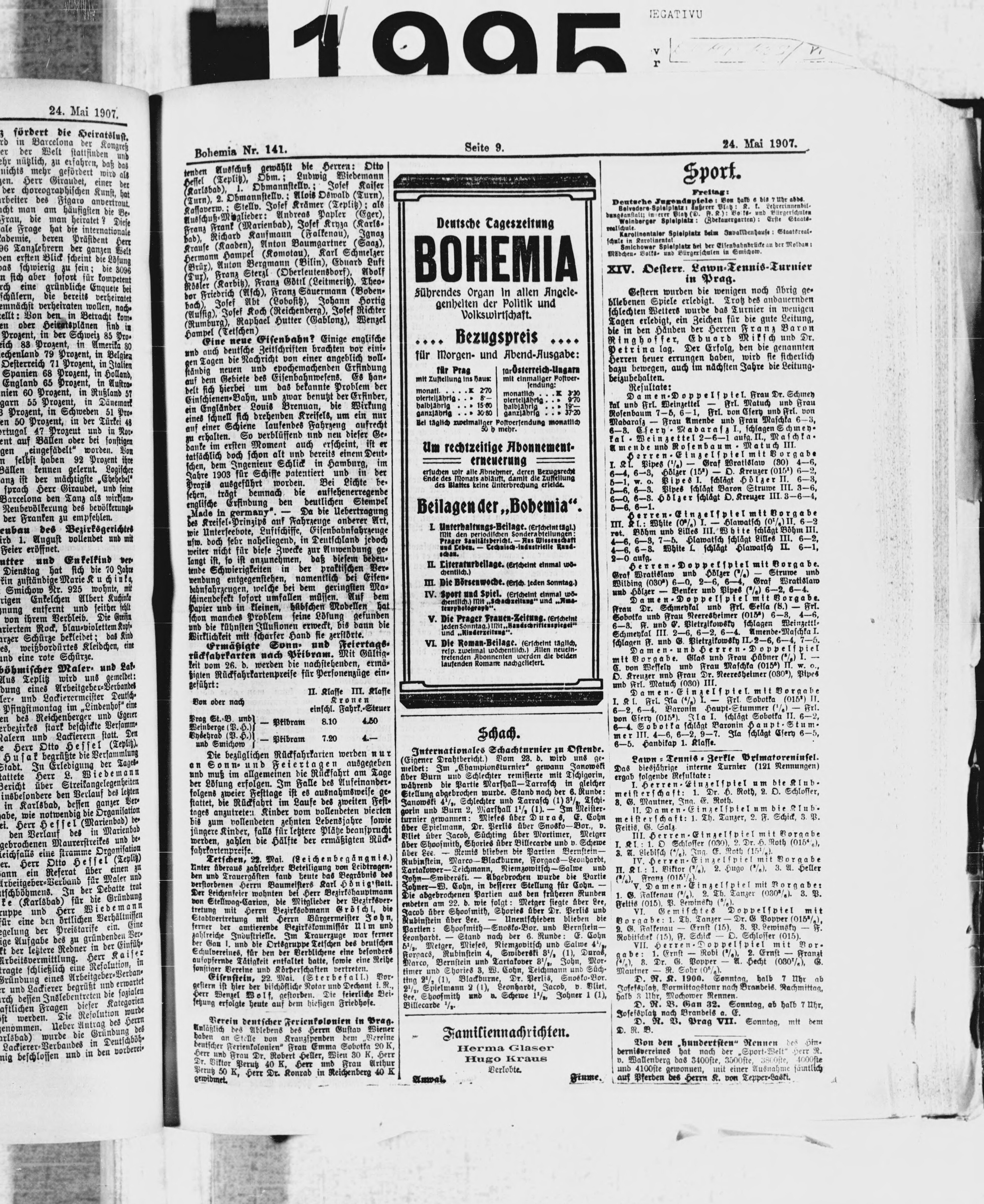 * Datum vydání výtisku: 24.5.1907 Číslo výtisku: 141 Poznámky k výtisku: ranní vydání
