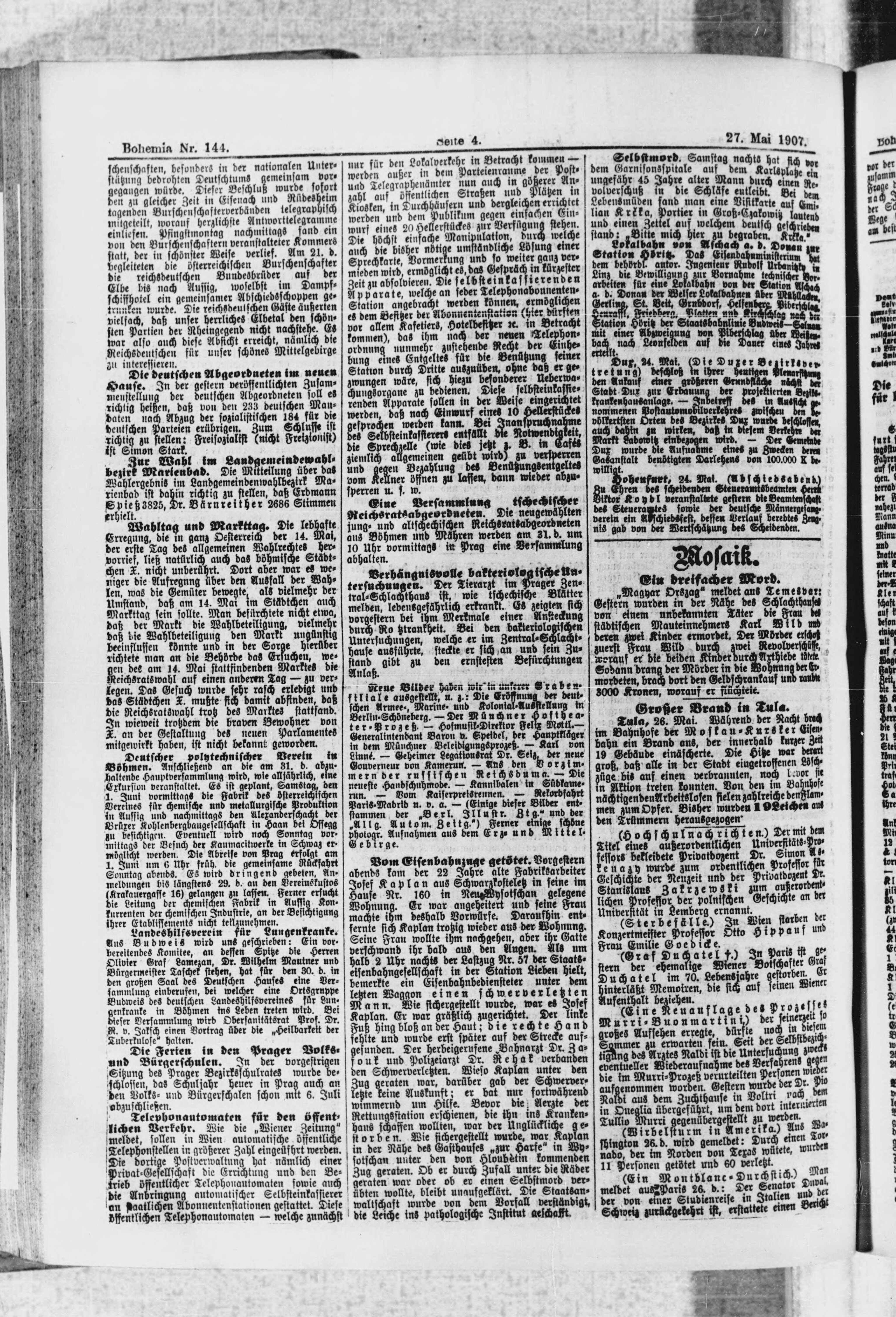 * Datum vydání výtisku: 27.5.1907 Číslo výtisku: 144 Poznámky k výtisku: polední vydání