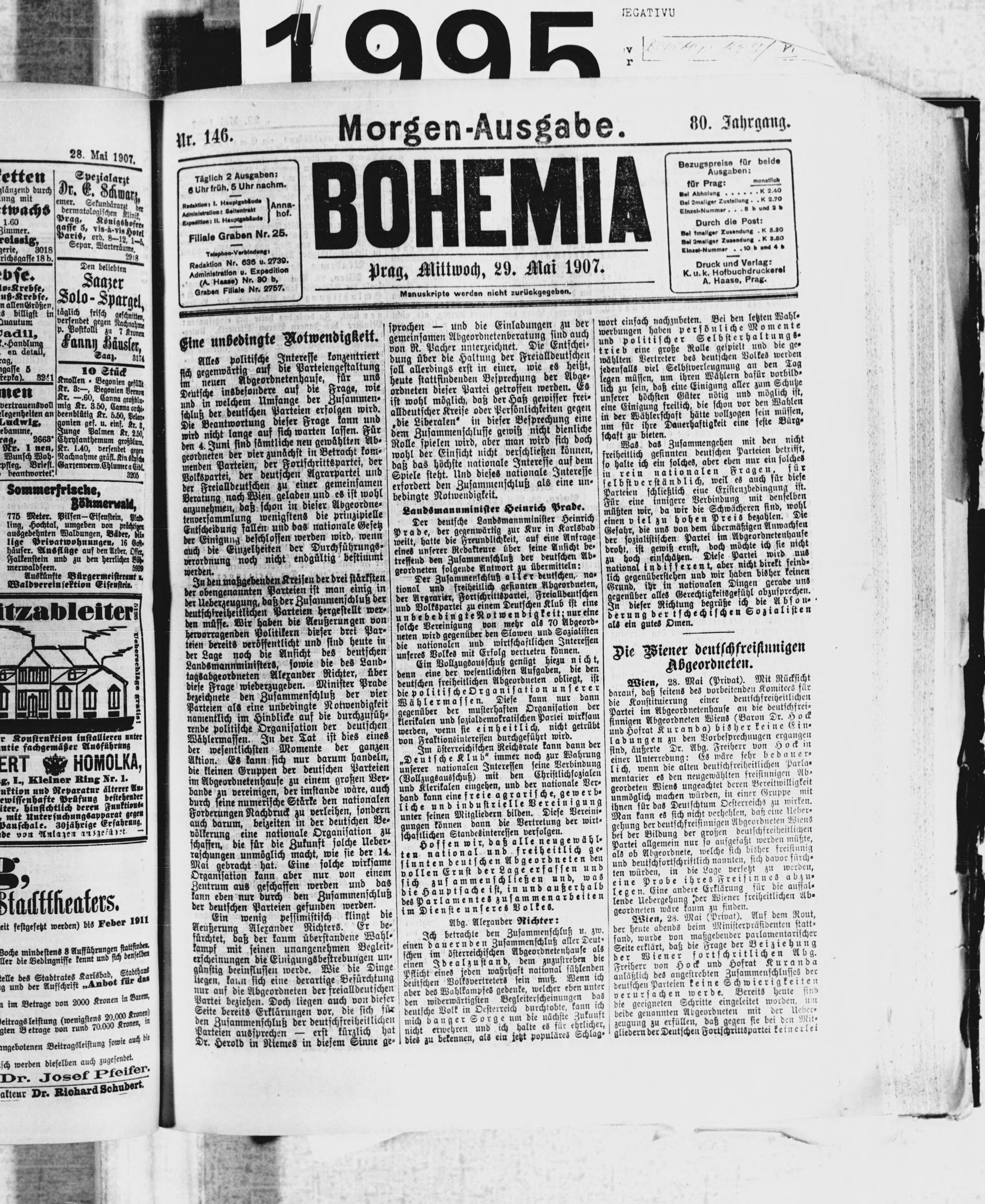 * Datum vydání výtisku: 29.5.1907 Číslo výtisku: 146 Poznámky k výtisku: ranní vydání