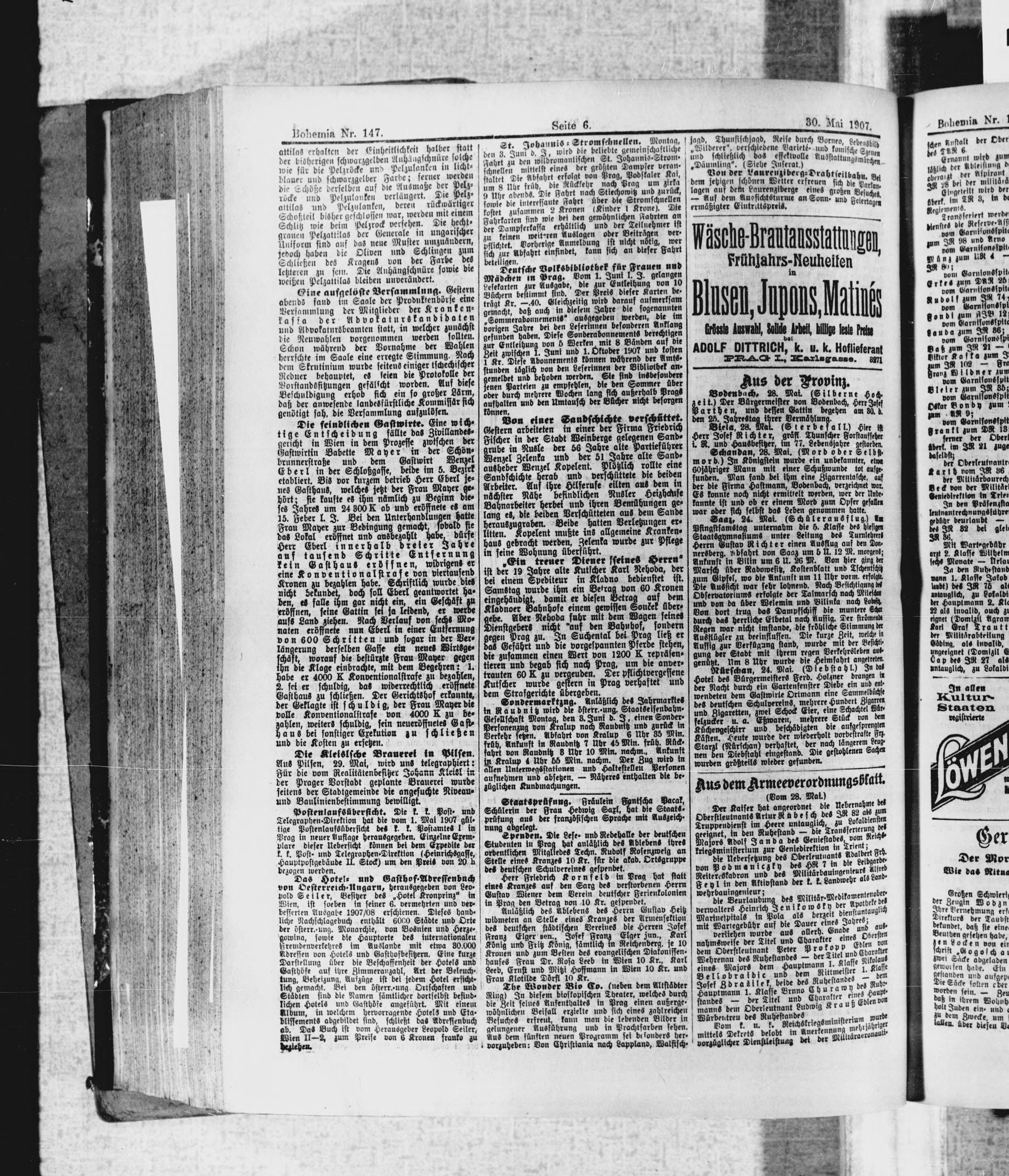 * Datum vydání výtisku: 30.5.1907 Číslo výtisku: 147 Poznámky k výtisku: ranní vydání
