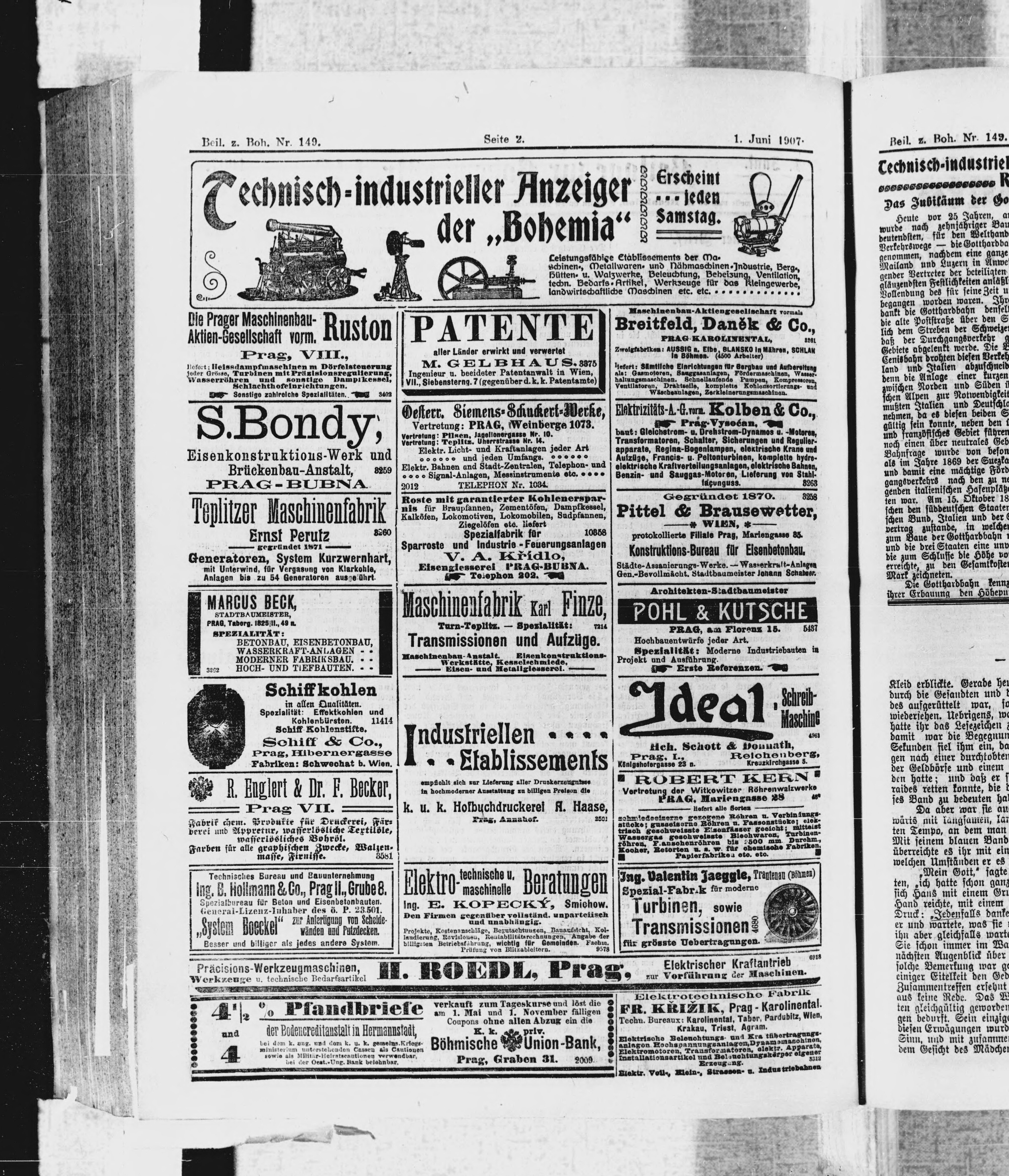 * Datum vydání výtisku: 1.6.1907 Číslo výtisku: 149 Typ výtisku: příloha