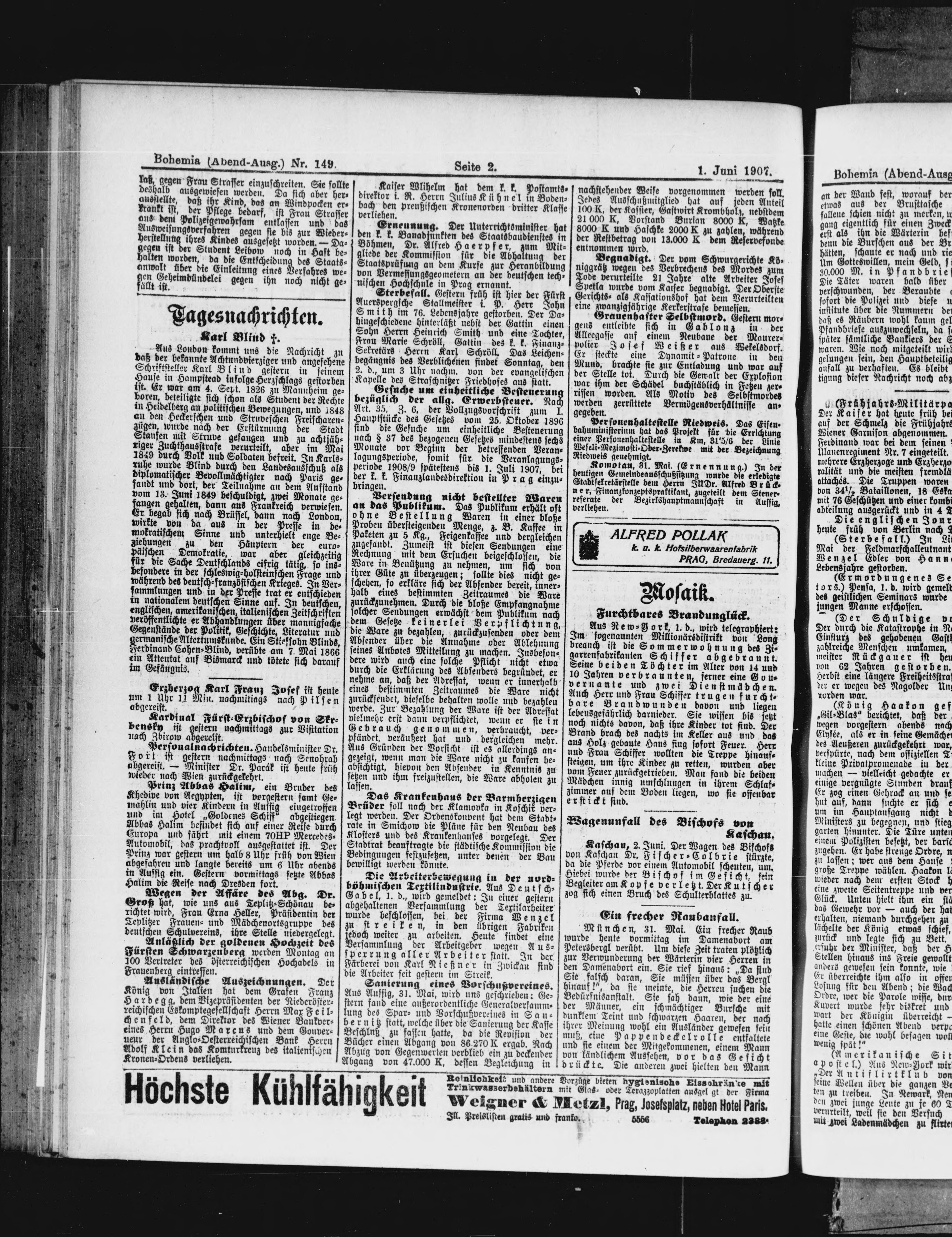 * Datum vydání výtisku: 1.6.1907 Číslo výtisku: 149 Poznámky k výtisku: večerní vydání