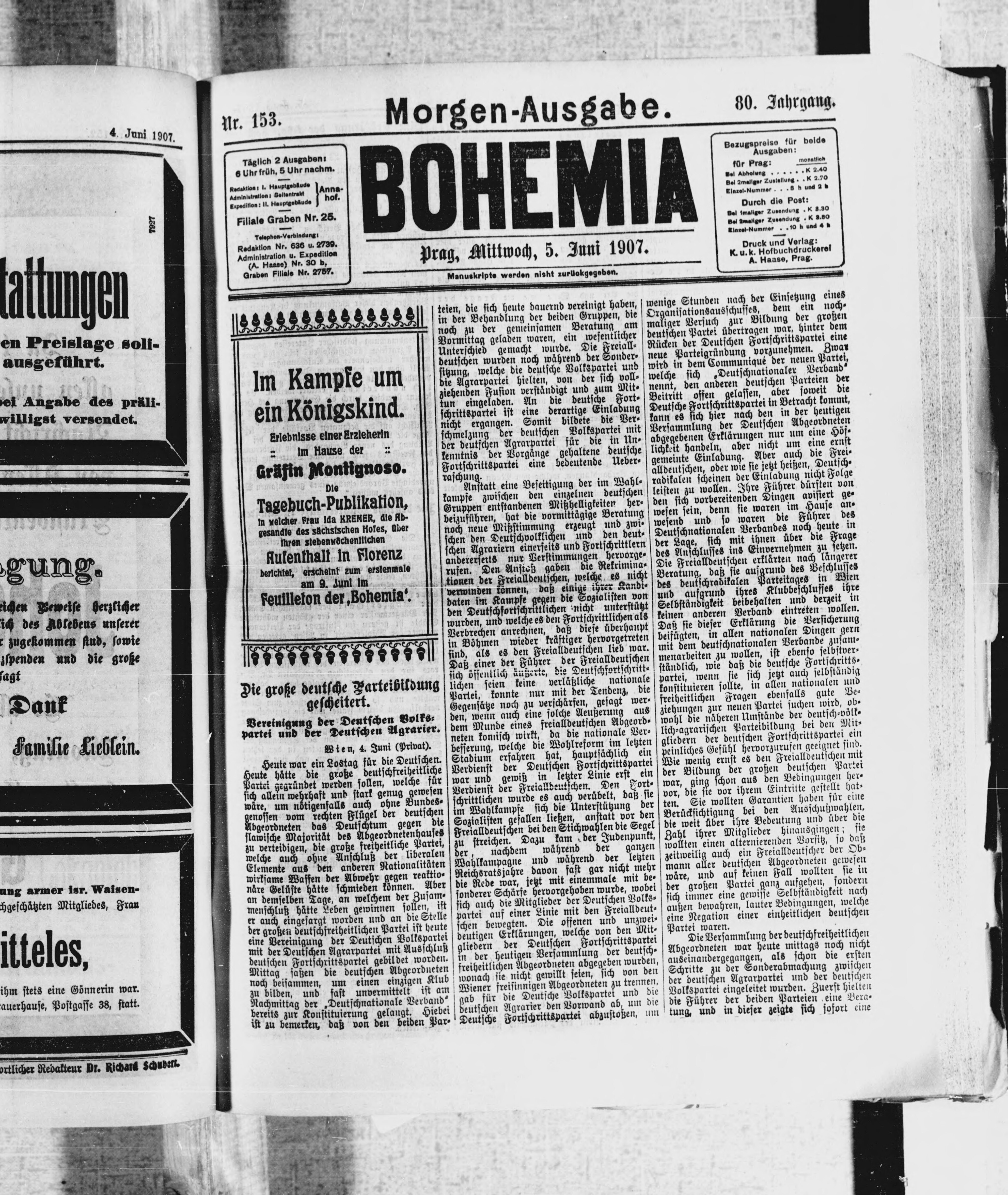 * Datum vydání výtisku: 5.6.1907 Číslo výtisku: 153 Poznámky k výtisku: ranní vydání