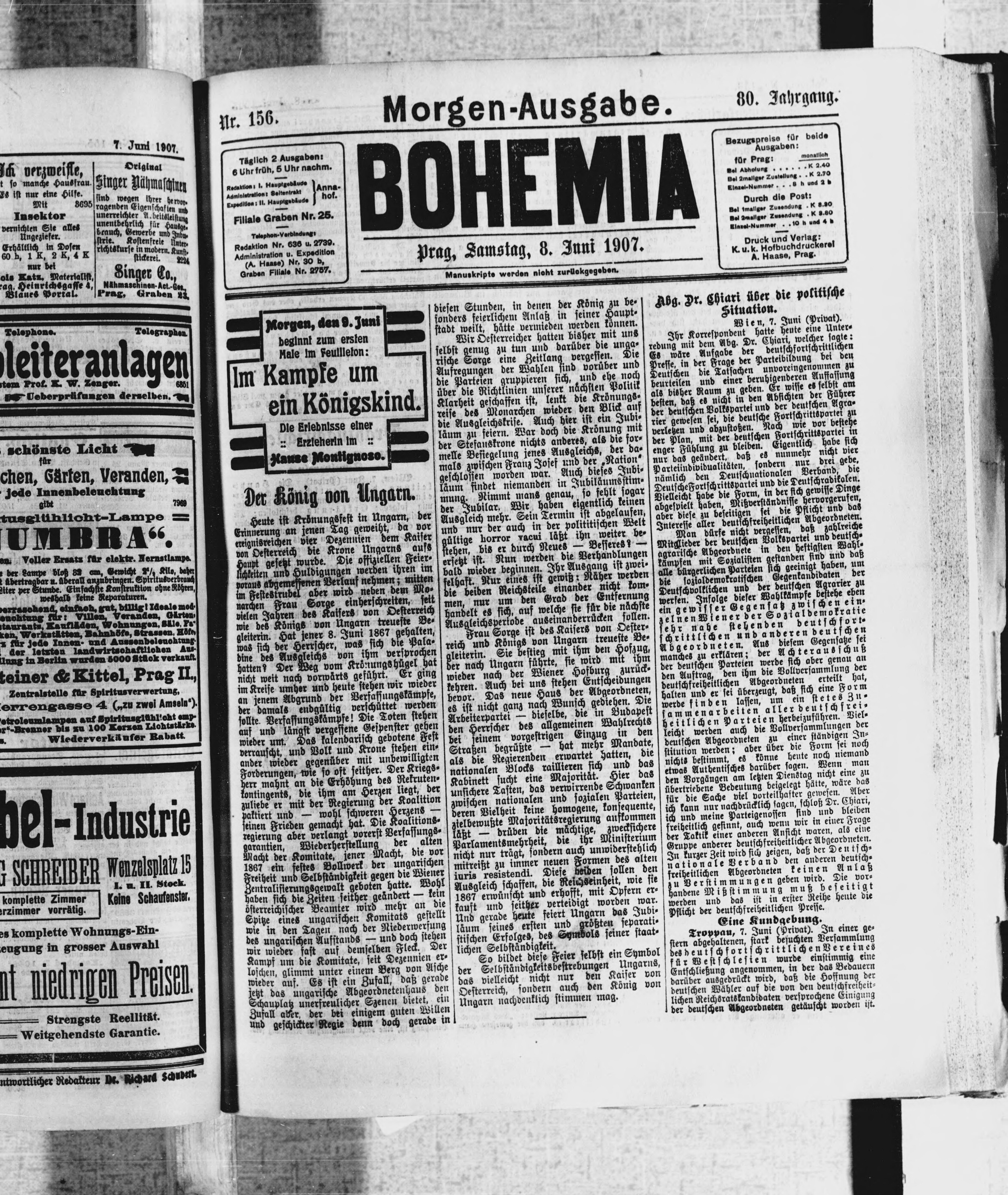 * Datum vydání výtisku: 8.6.1907 Číslo výtisku: 156 Poznámky k výtisku: ranní vydání