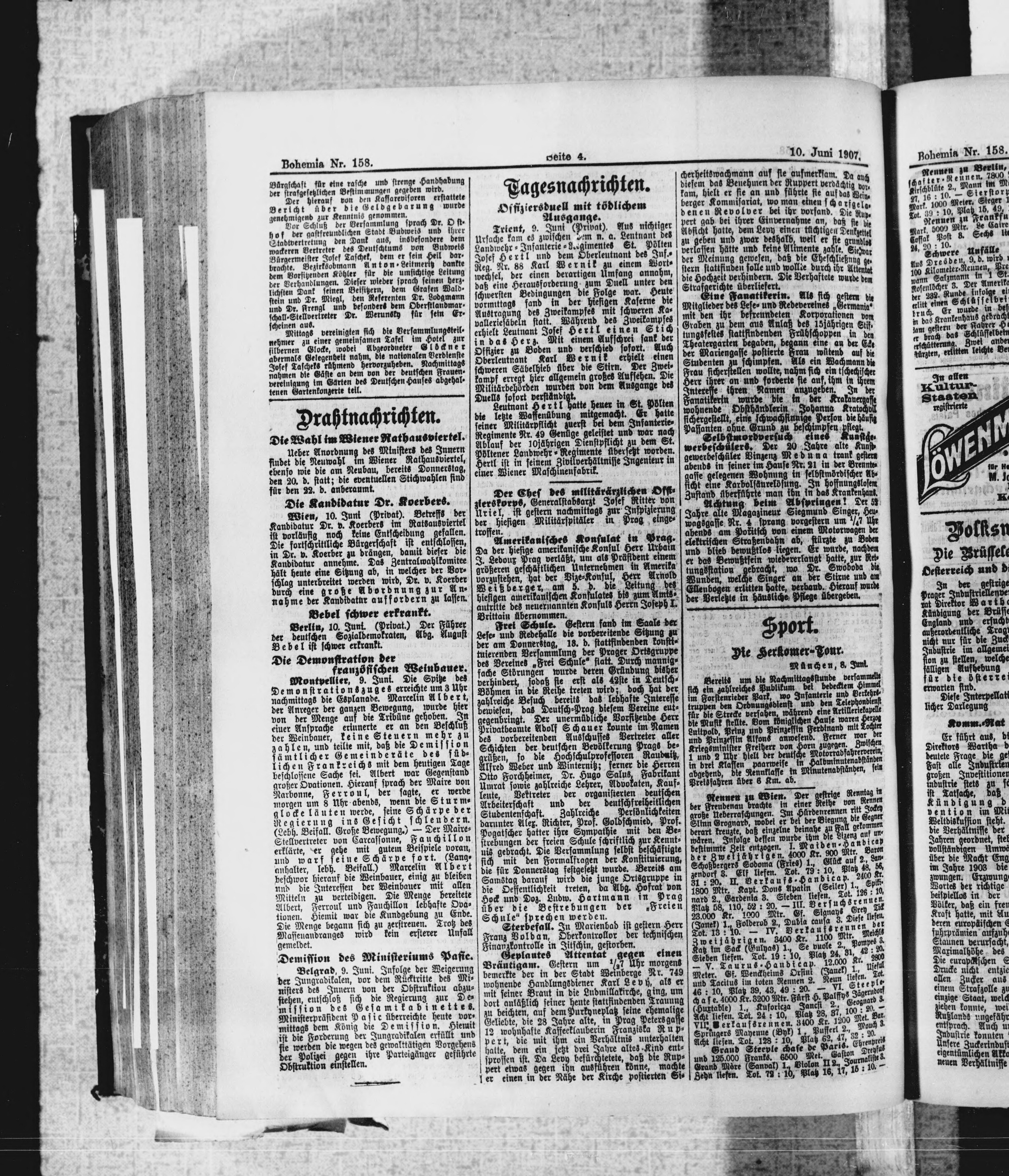 * Datum vydání výtisku: 10.6.1907 Číslo výtisku: 158 Poznámky k výtisku: polední vydání