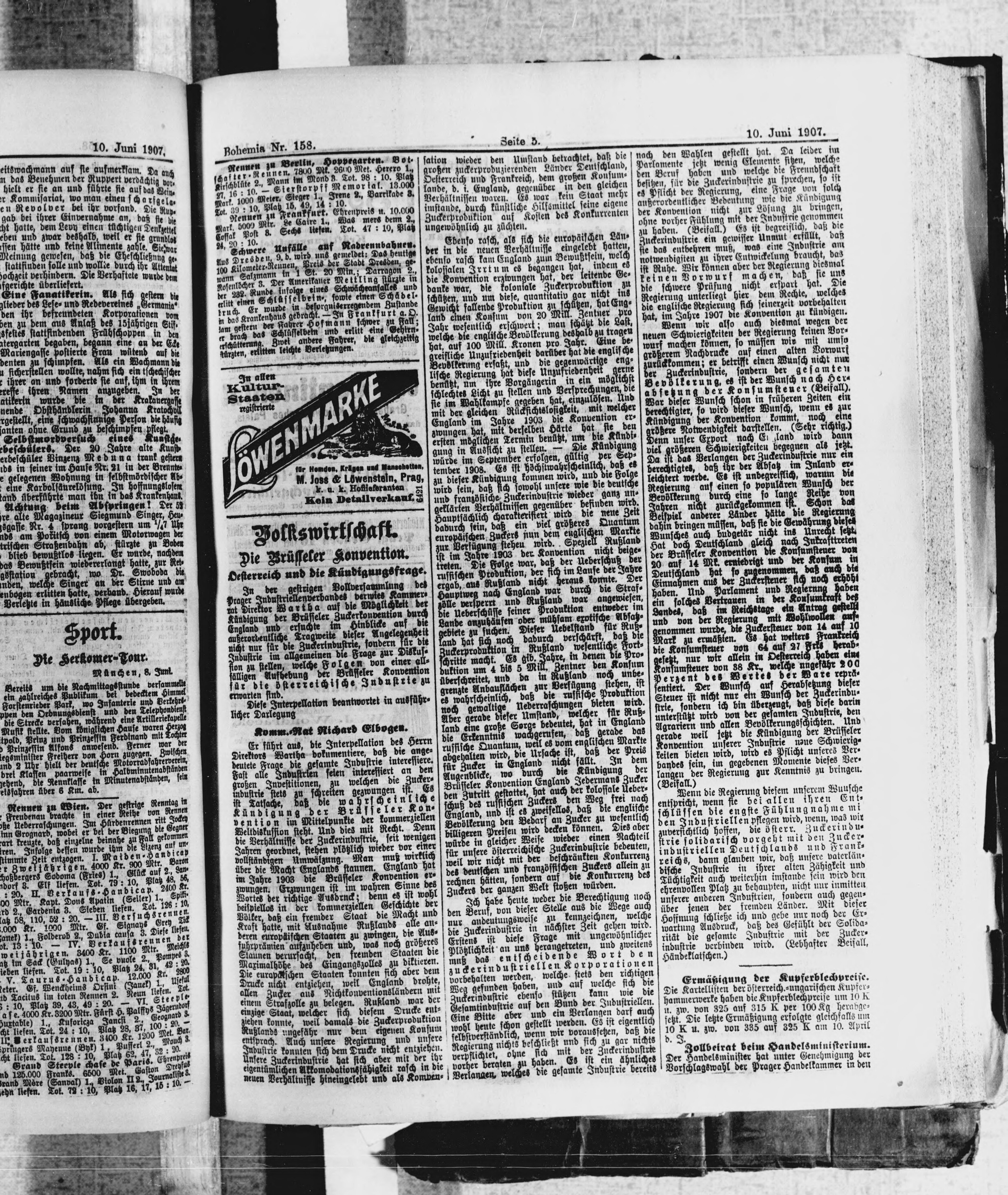 * Datum vydání výtisku: 10.6.1907 Číslo výtisku: 158 Poznámky k výtisku: polední vydání