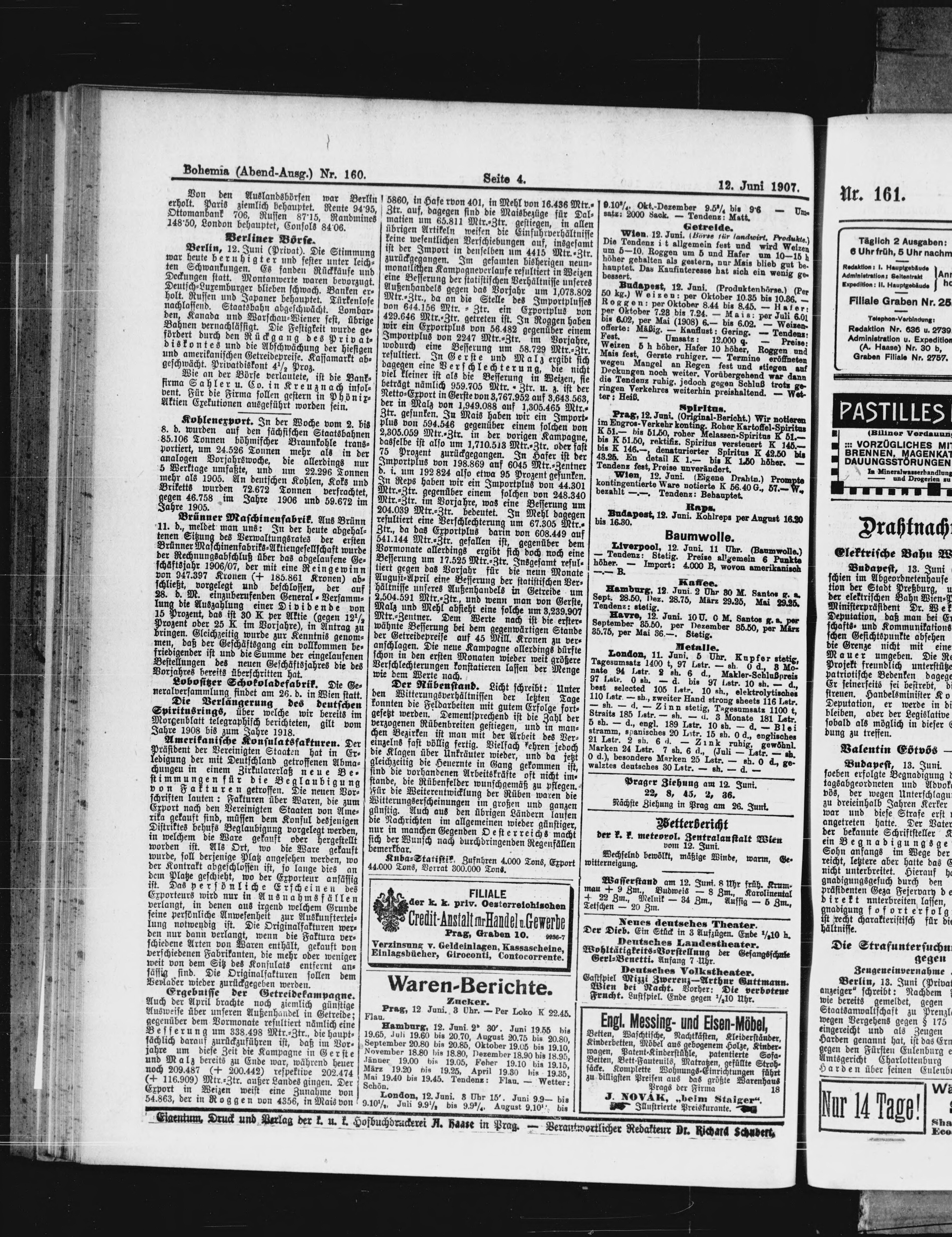 * Datum vydání výtisku: 12.6.1907 Číslo výtisku: 160 Poznámky k výtisku: večerní vydání