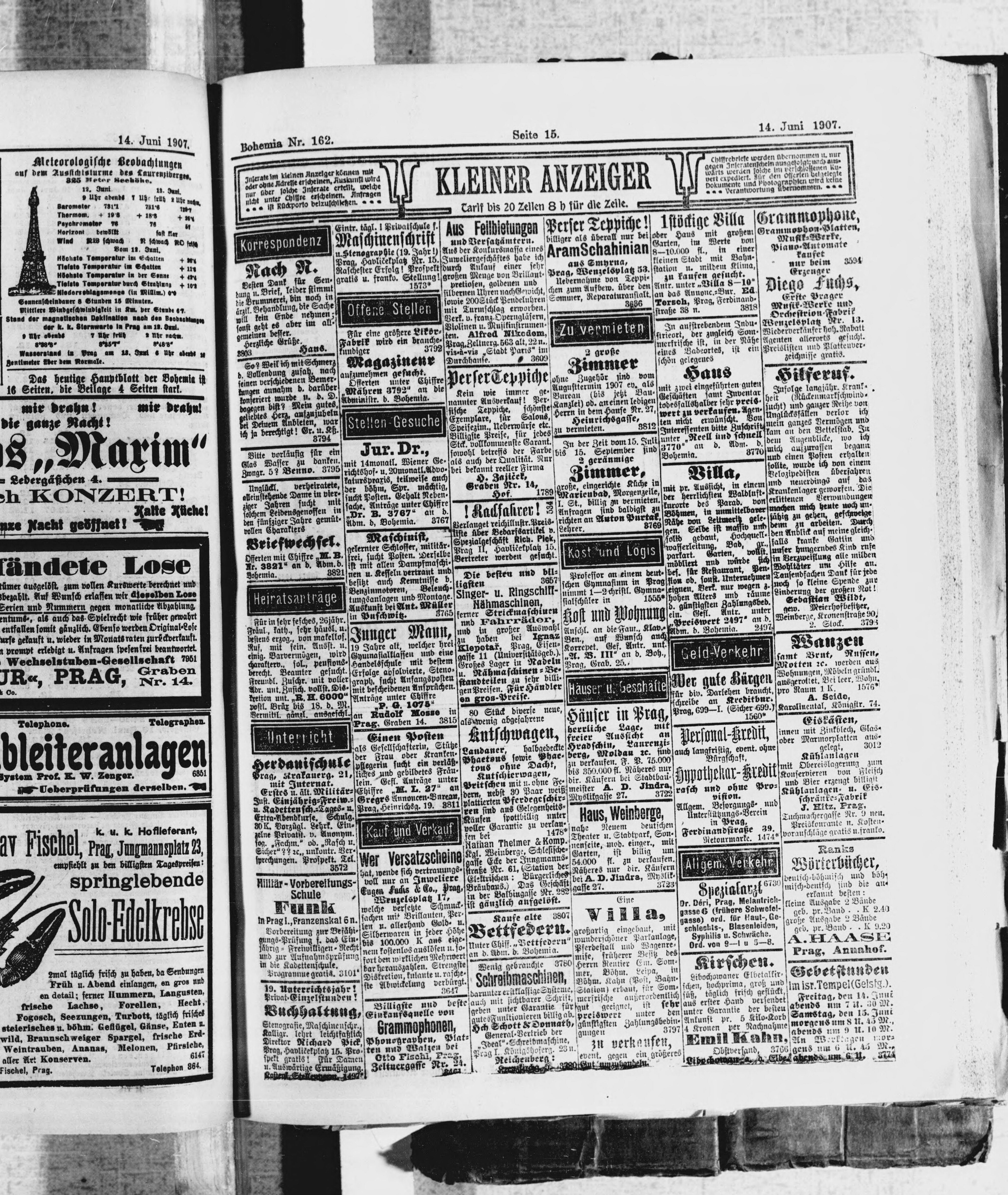 * Datum vydání výtisku: 14.6.1907 Číslo výtisku: 162 Poznámky k výtisku: ranní vydání