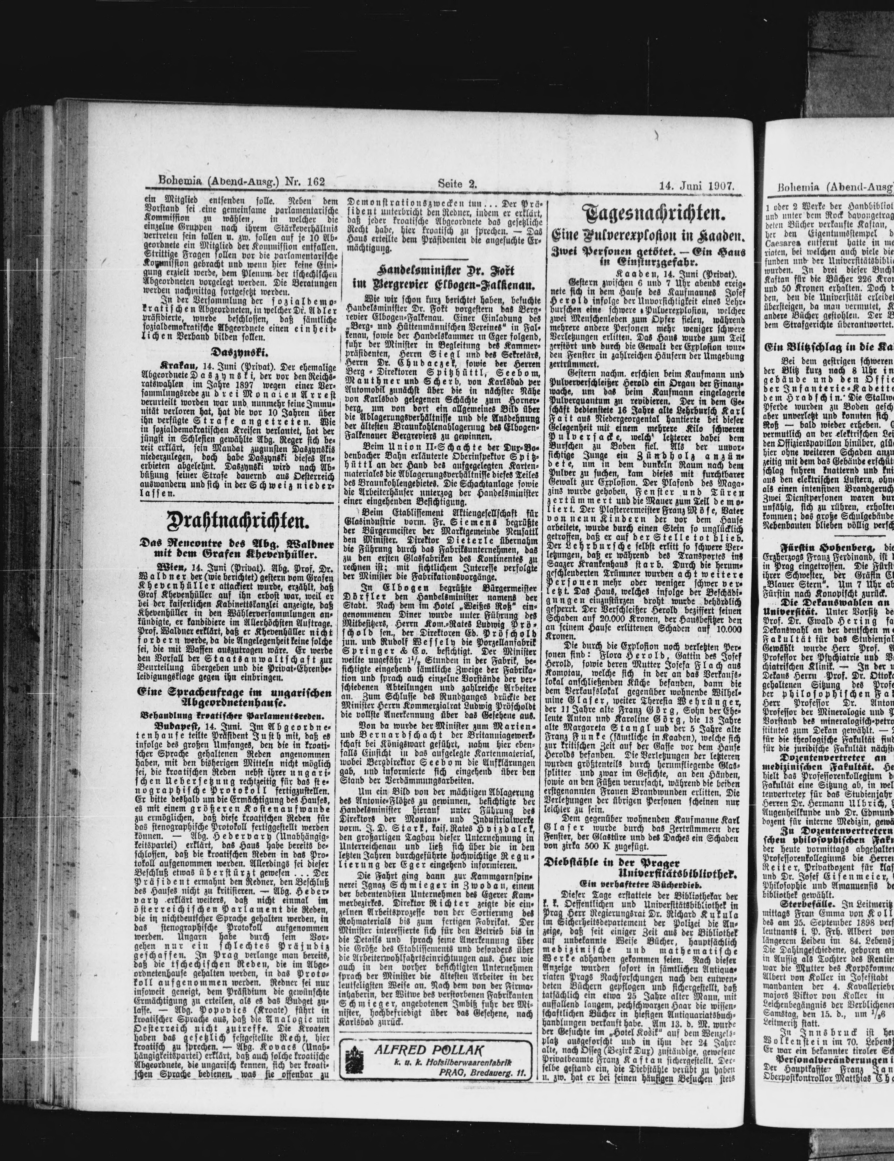 * Datum vydání výtisku: 14.6.1907 Číslo výtisku: 162 Poznámky k výtisku: večerní vydání