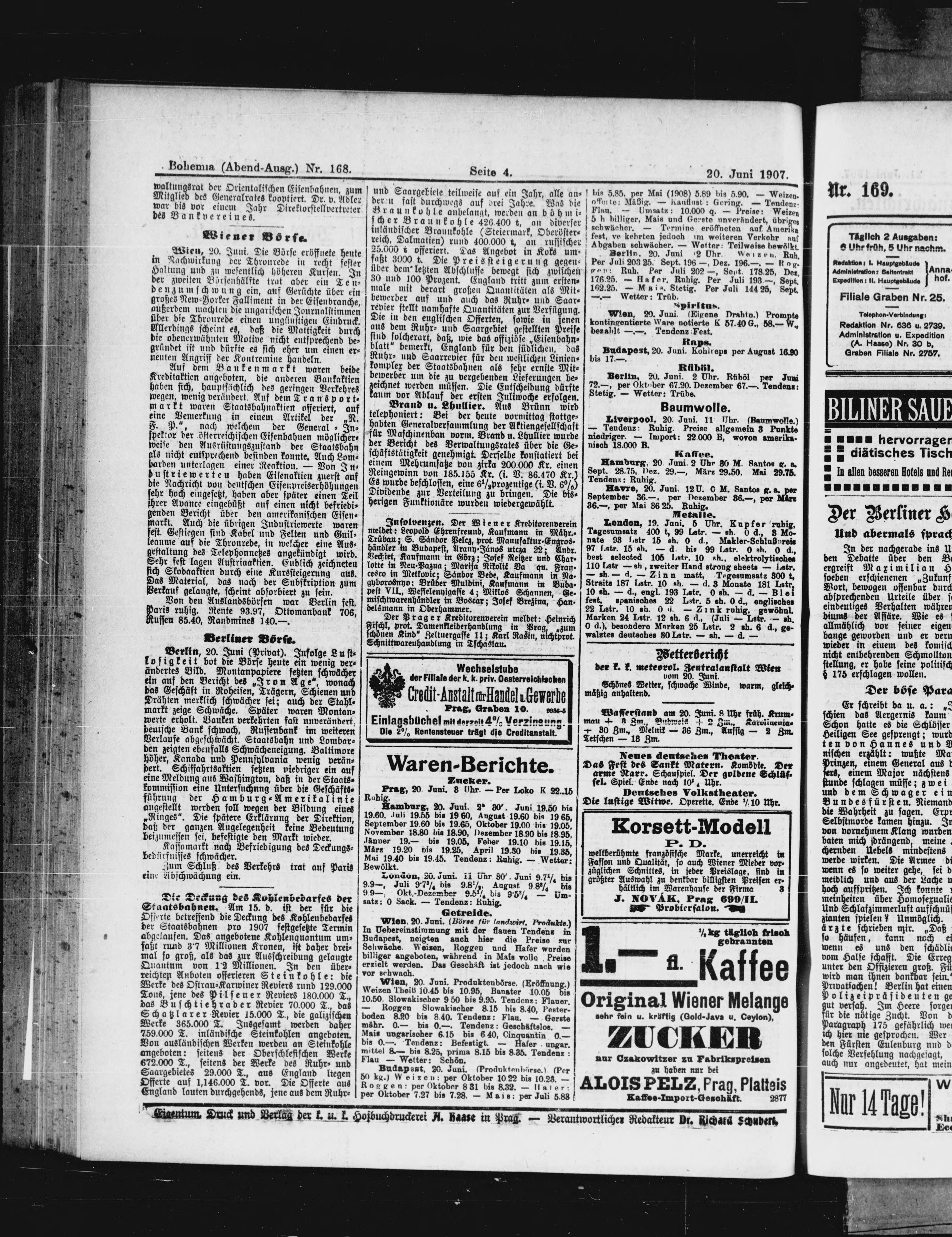 * Datum vydání výtisku: 20.6.1907 Číslo výtisku: 168 Poznámky k výtisku: večerní vydání