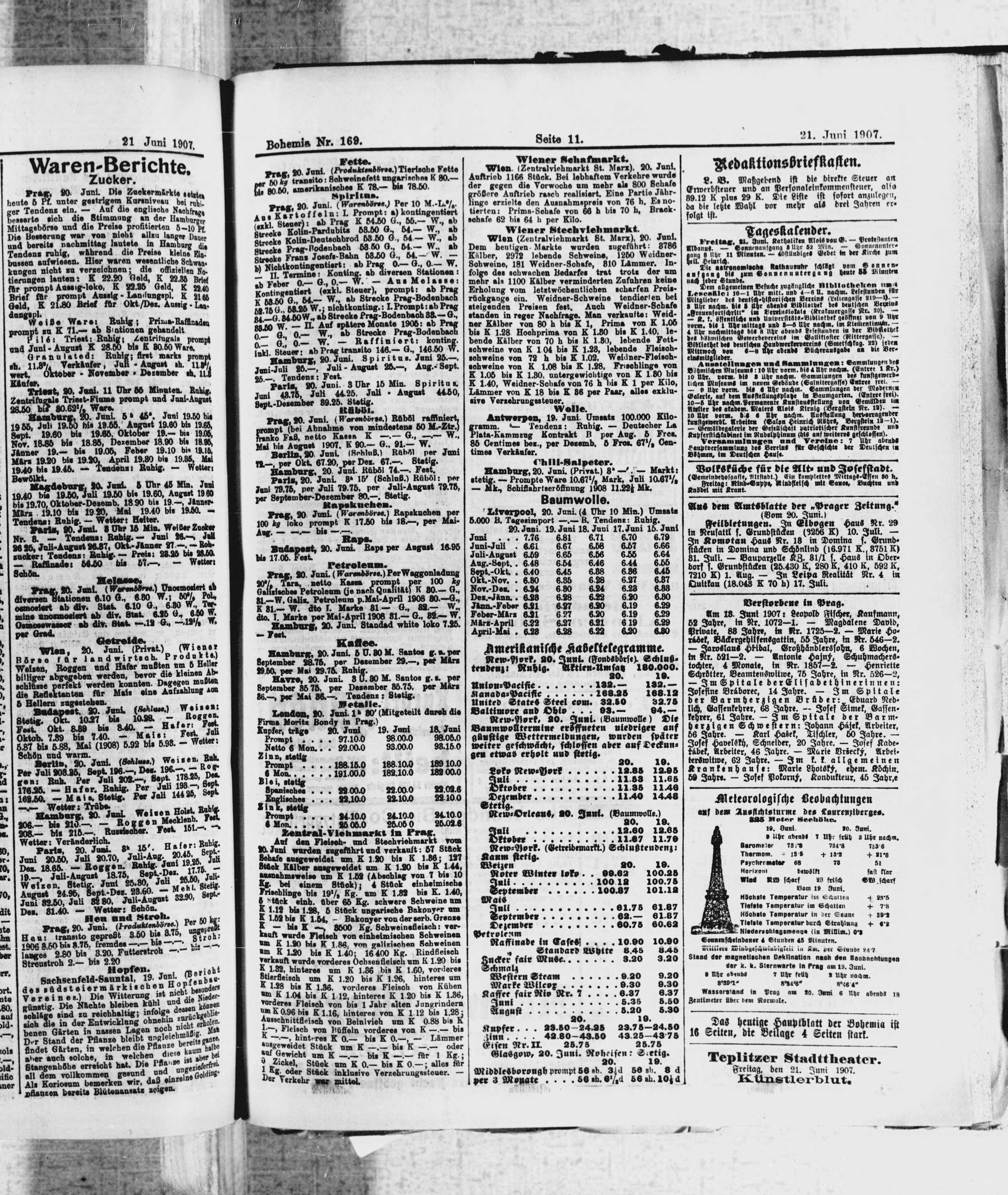 * Datum vydání výtisku: 21.6.1907 Číslo výtisku: 169 Poznámky k výtisku: ranní vydání