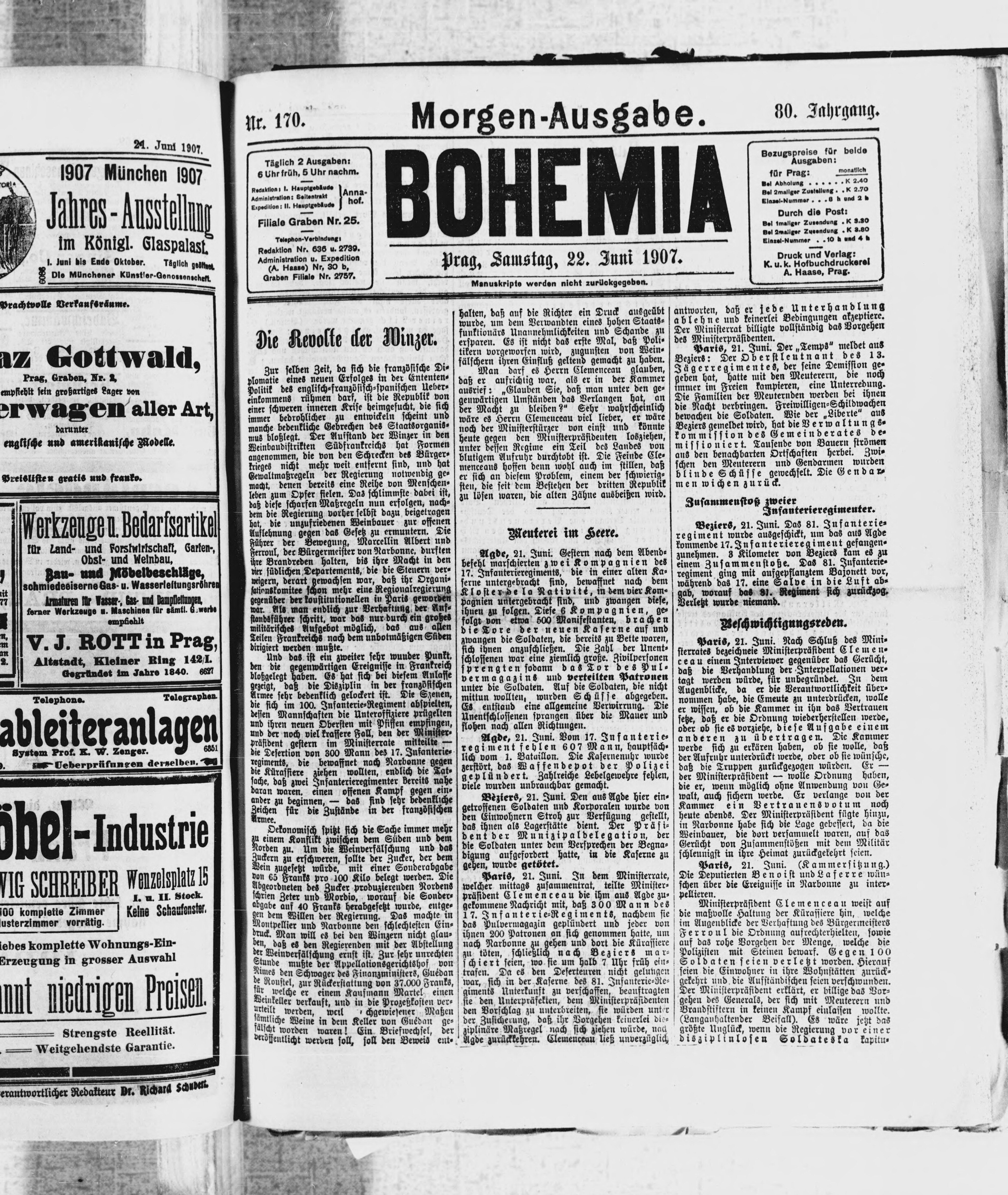 * Datum vydání výtisku: 22.6.1907 Číslo výtisku: 170 Poznámky k výtisku: ranní vydání
