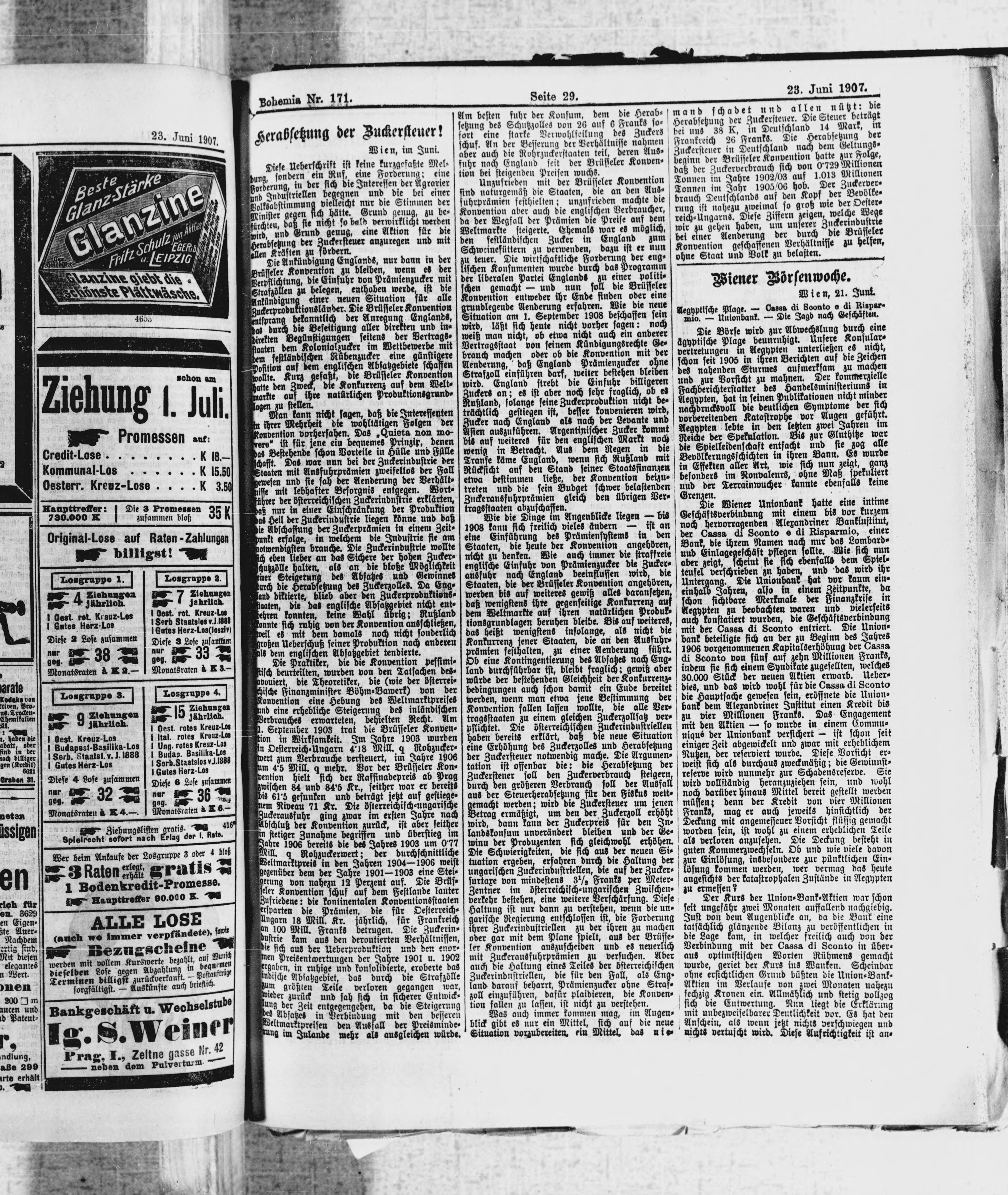 * Datum vydání výtisku: 23.6.1907 Číslo výtisku: 171 Poznámky k výtisku: ranní vydání