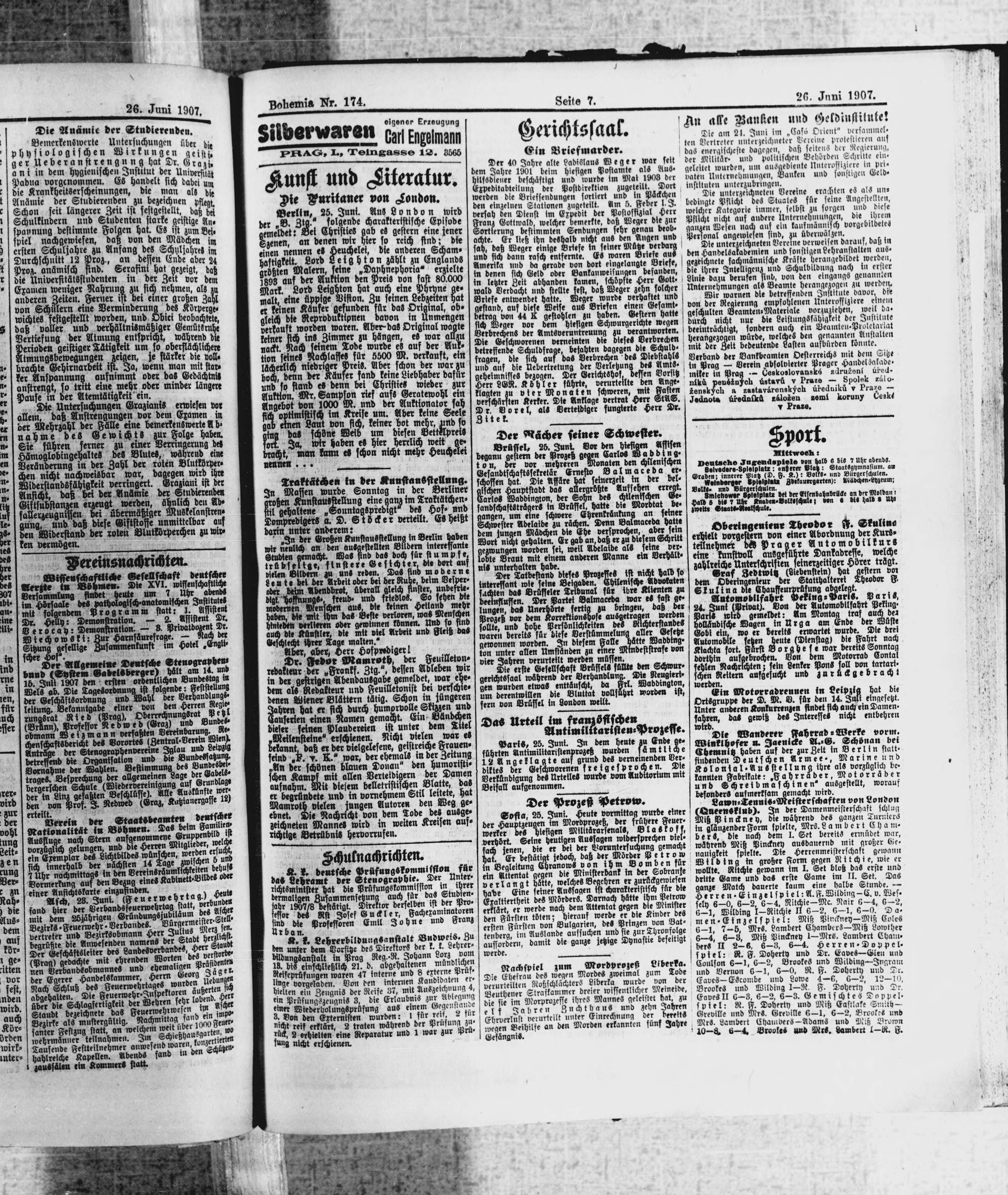 * Datum vydání výtisku: 26.6.1907 Číslo výtisku: 174 Poznámky k výtisku: ranní vydání