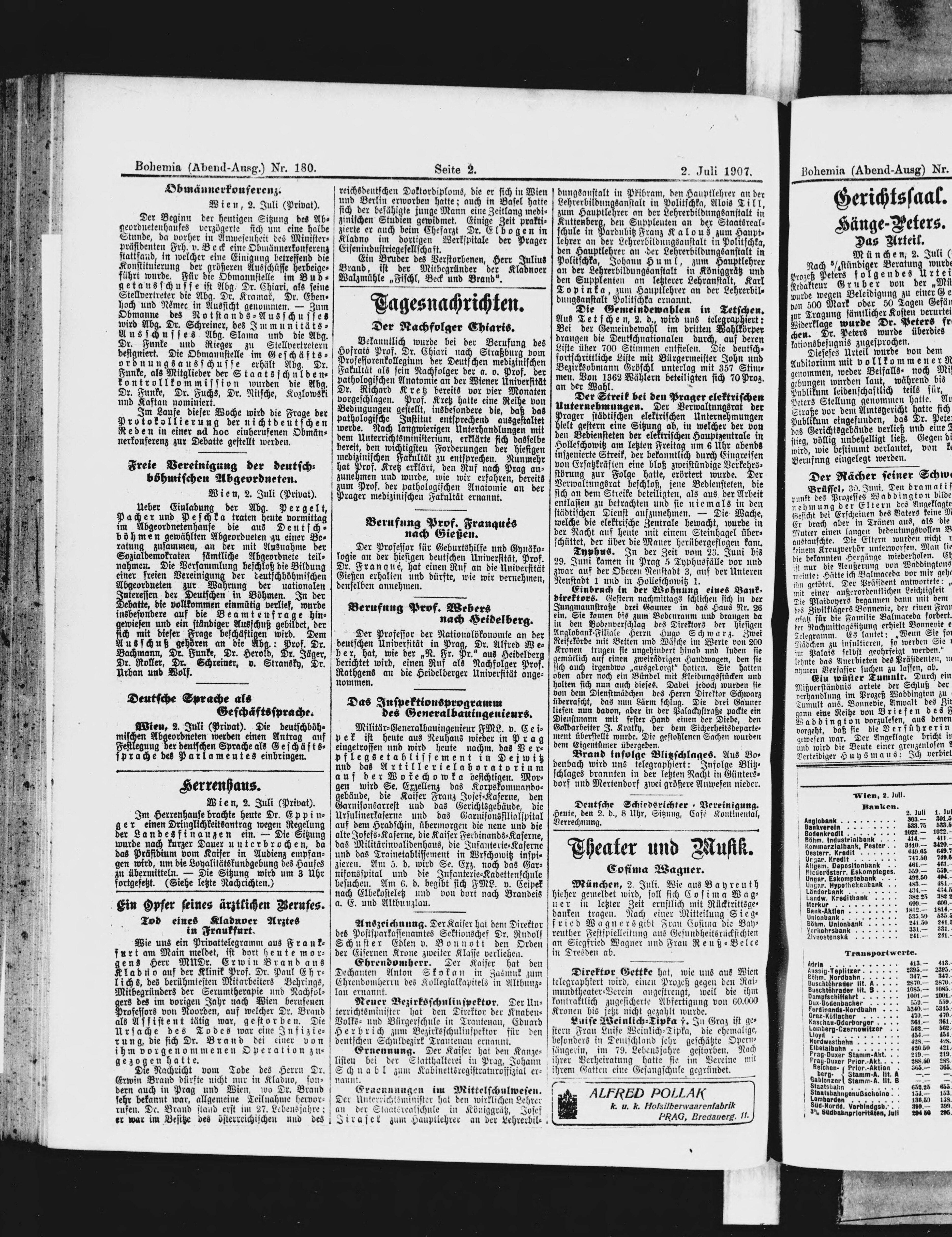 * Datum vydání výtisku: 2.7.1907 Číslo výtisku: 180 Poznámky k výtisku: večerní vydání