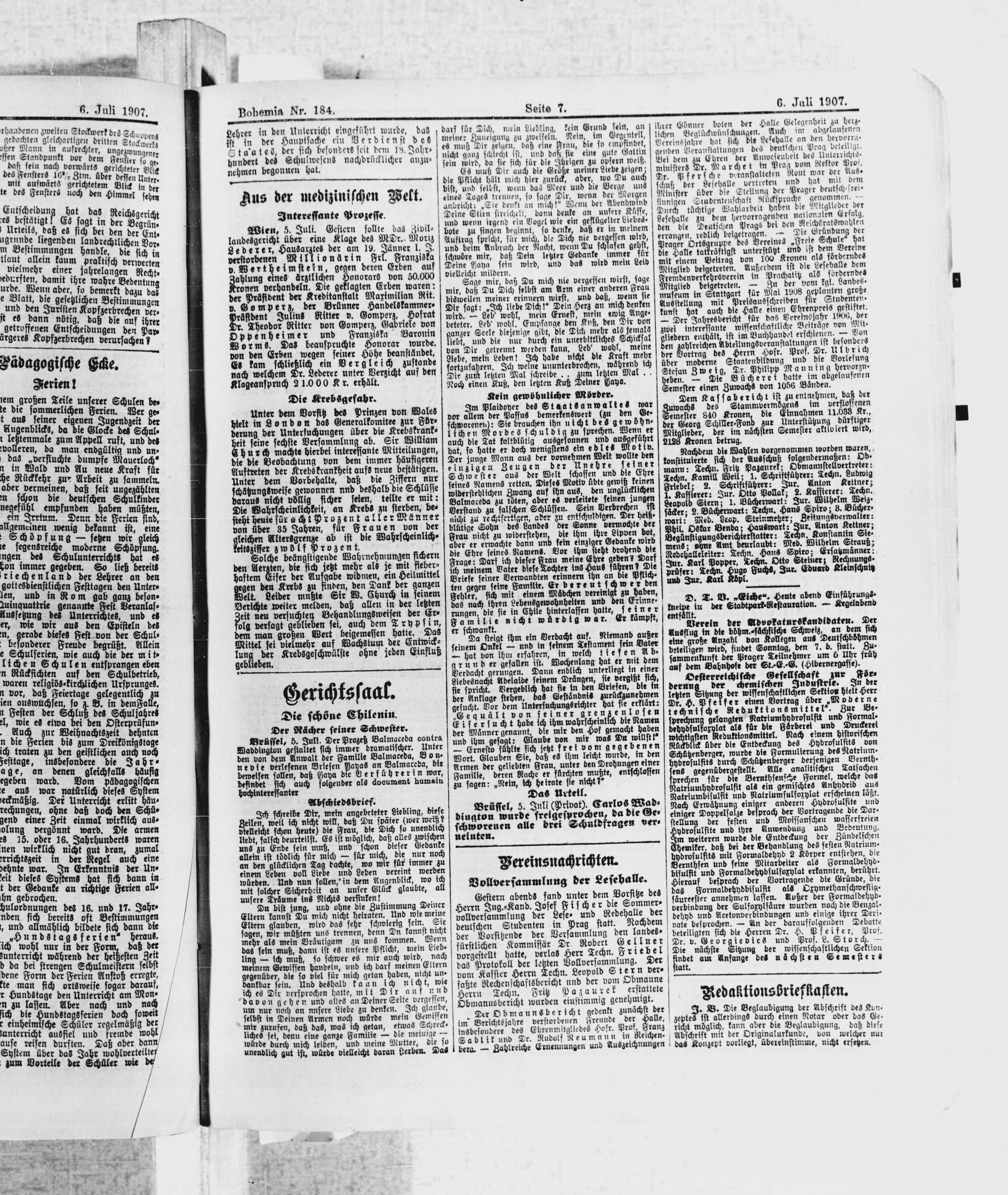 * Datum vydání výtisku: 6.7.1907 Číslo výtisku: 184 Poznámky k výtisku: ranní vydání